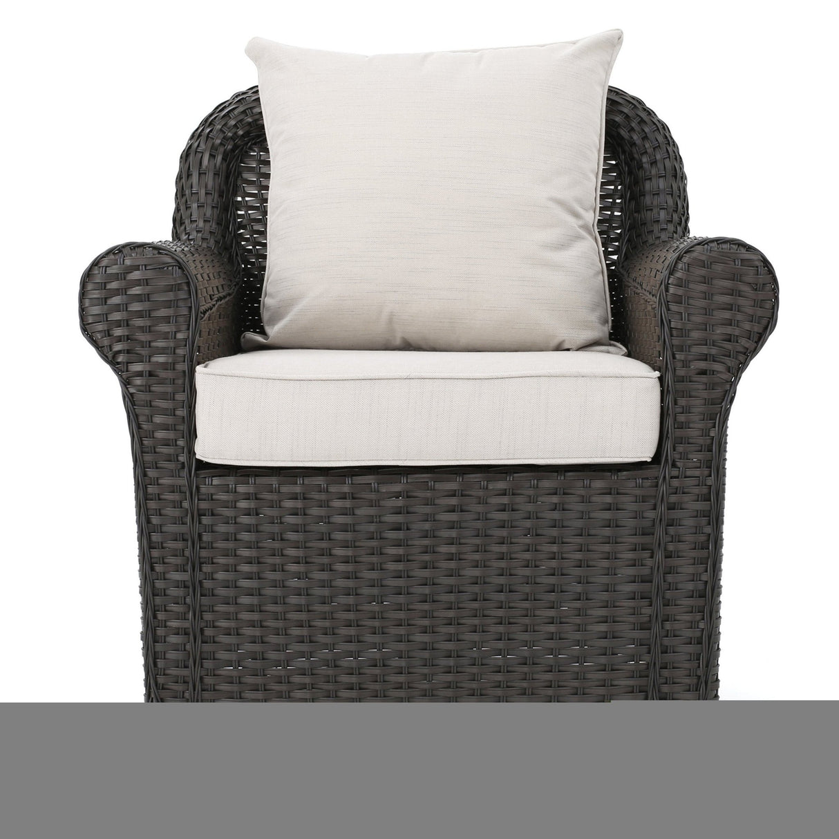 Elevate your outdoor experience with our new and improved outdoor rocking chair. Made with top-quality wicker and water-resistant fabric cushions, this chair is the perfect addition to any outdoor space. Its large size and swivel feature make it ideal for relaxing and enjoying the outdoors. Whether you're reading a book or simply taking in the scenery, our rocking chair will have you loving your backyard again.
