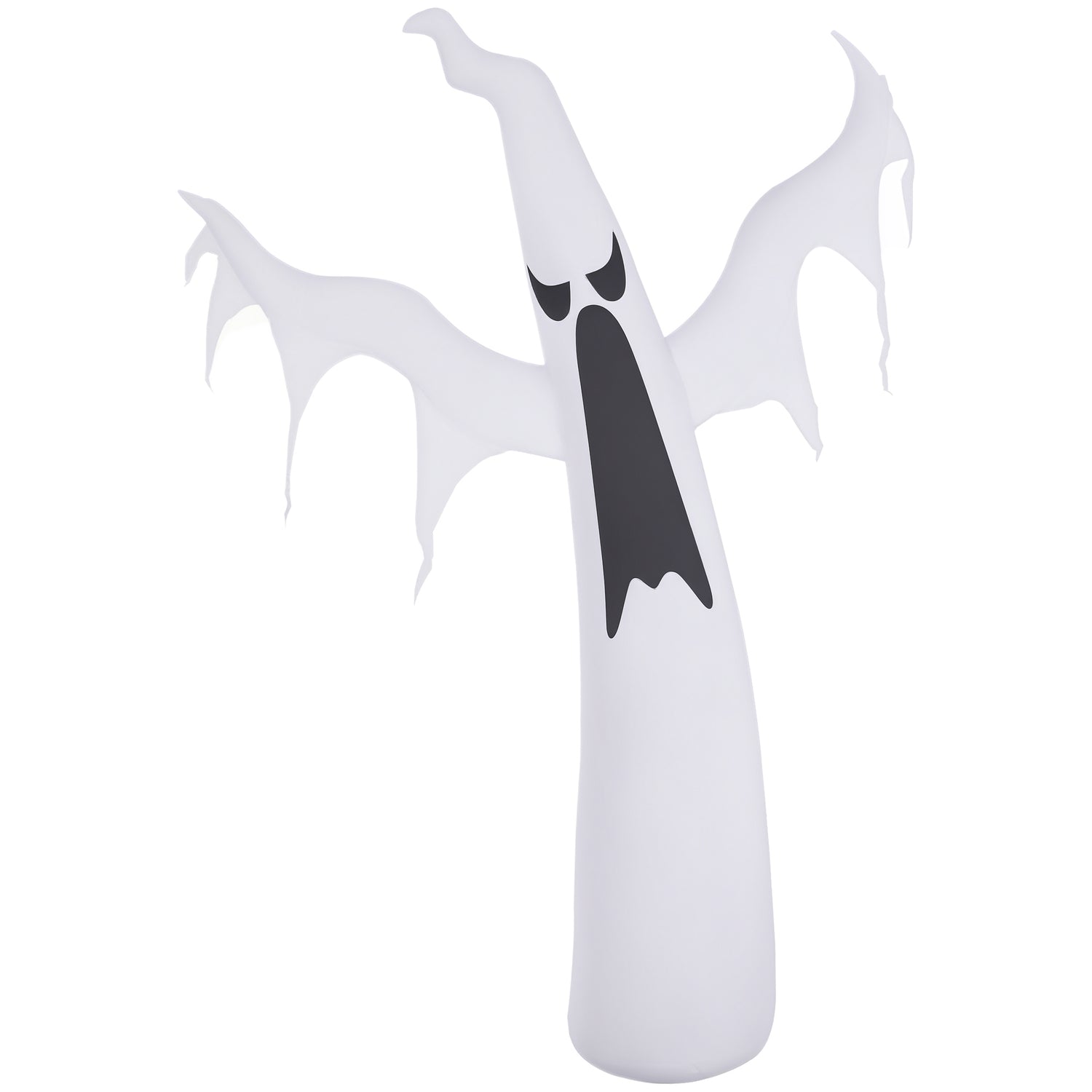 • Creepy Fun: This 6' tall Halloween yard inflatable features a scary white ghost that seems to be dancing or floating through the night.