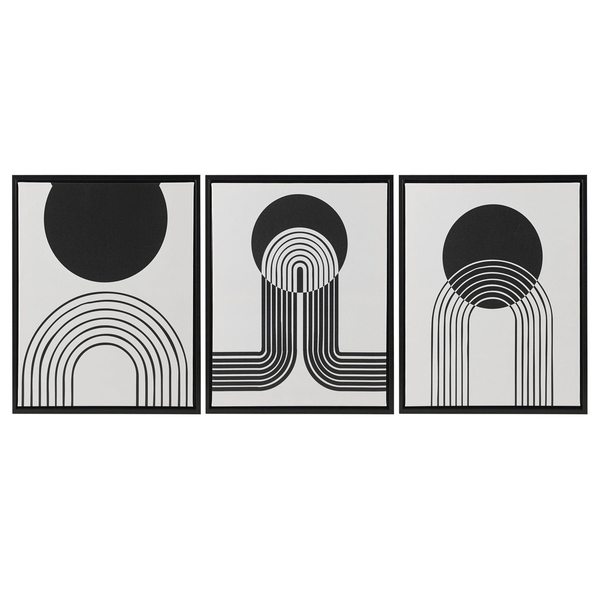 Elevate your space with the bold sophistication of Cosmic Curl Trilogy, a striking 3-piece framed canvas set from the Modernist Reverie™ collection by Artist 9 Lives Studio. Channeling the essence of mid-century modern design, each piece showcases captivating curved geometric forms in a sleek palette of black and off-white taupe, creating a harmonious dance of shape and shadow.