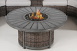 Its round 52" tabletop offers ample room for hosting, while the central fire bowl—15" in diameter—radiates warmth at a powerful 60,000 BTUs. The flame emerges from natural fire stones, casting a soft ambient glow that invites conversation and relaxation. Rust- and heat-resistant materials ensure long-lasting performance, and the powder-coated aluminum frame delivers both strength and elegance.