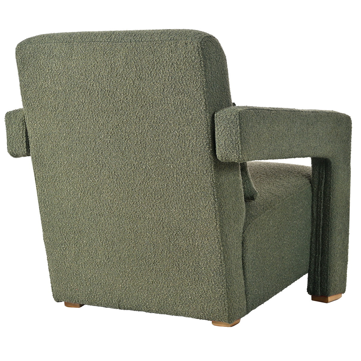 The chair rests confidently on square wooden block legs, a masterstroke in both stability and understated luxury. A slightly inclined seat, imperceptible at first glance, invites the sitter to recline ever so gently into comfort, as if the chair had anticipated the body's desires.