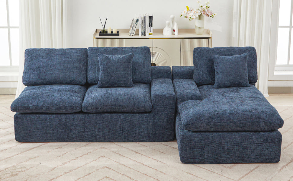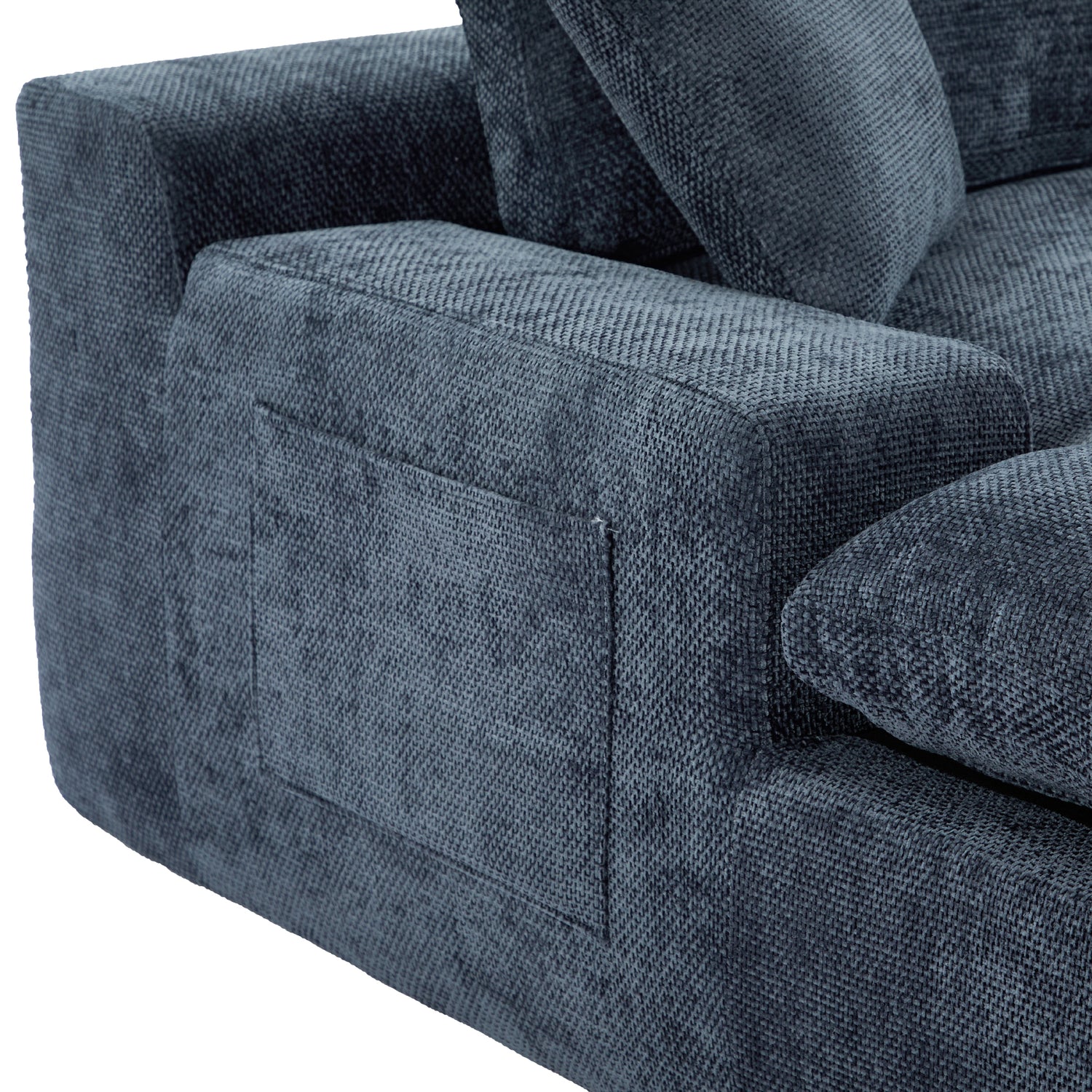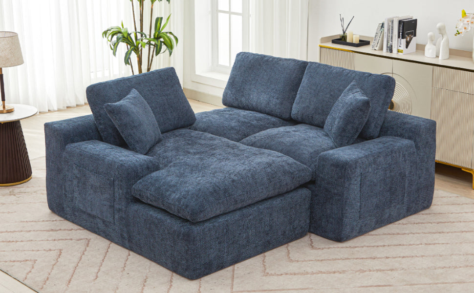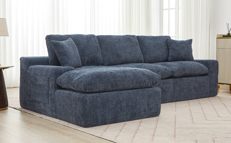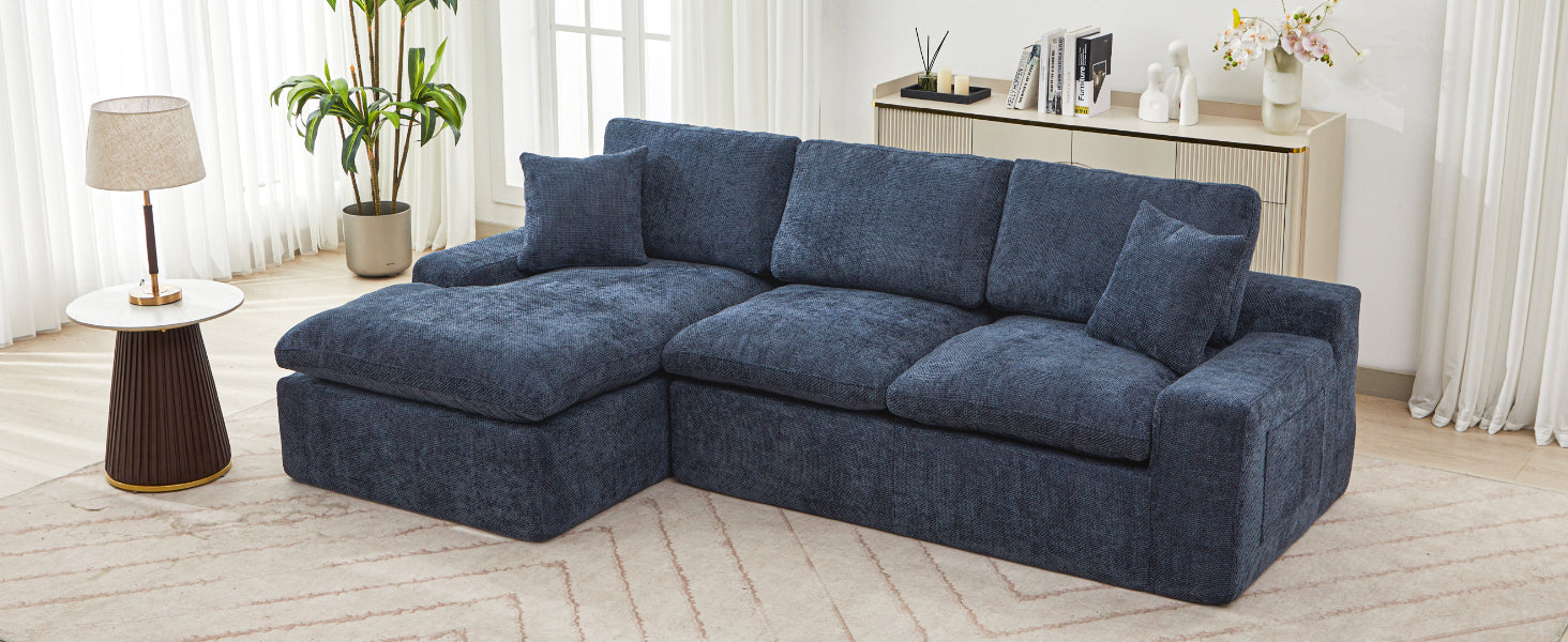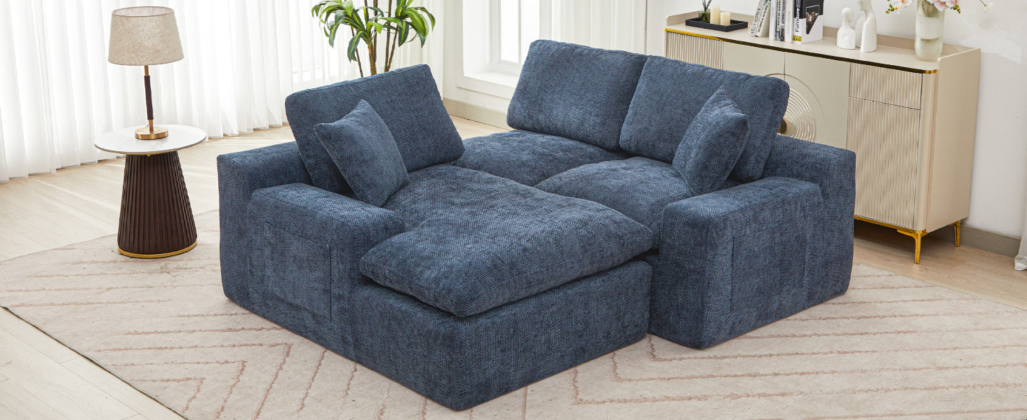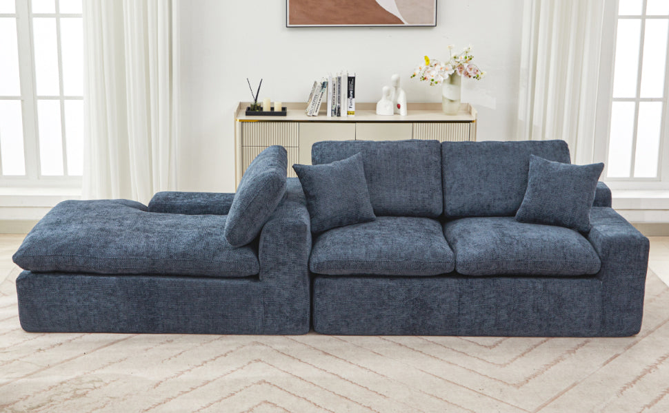 Designed for modern living, this modular sofa offers unmatched flexibility, comfort, and style. Its fully modular structure allows you to easily customize layouts—from an L-shape to a straight-line sofa or even a cozy bed—perfectly adapting to any space. The double-layer cushioning, with ultra-soft compression foam over a firmer support base, ensures a plush yet resilient seating experience. Upholstered in premium chenille fabric, the sofa combines a rich, inviting texture with exceptional durability. Featuring an extra-deep 21.5-inch seat, smart side storage pockets, and two matching throw pillows, this sofa is crafted to deliver everyday comfort, practical functionality, and timeless appeal for any home.