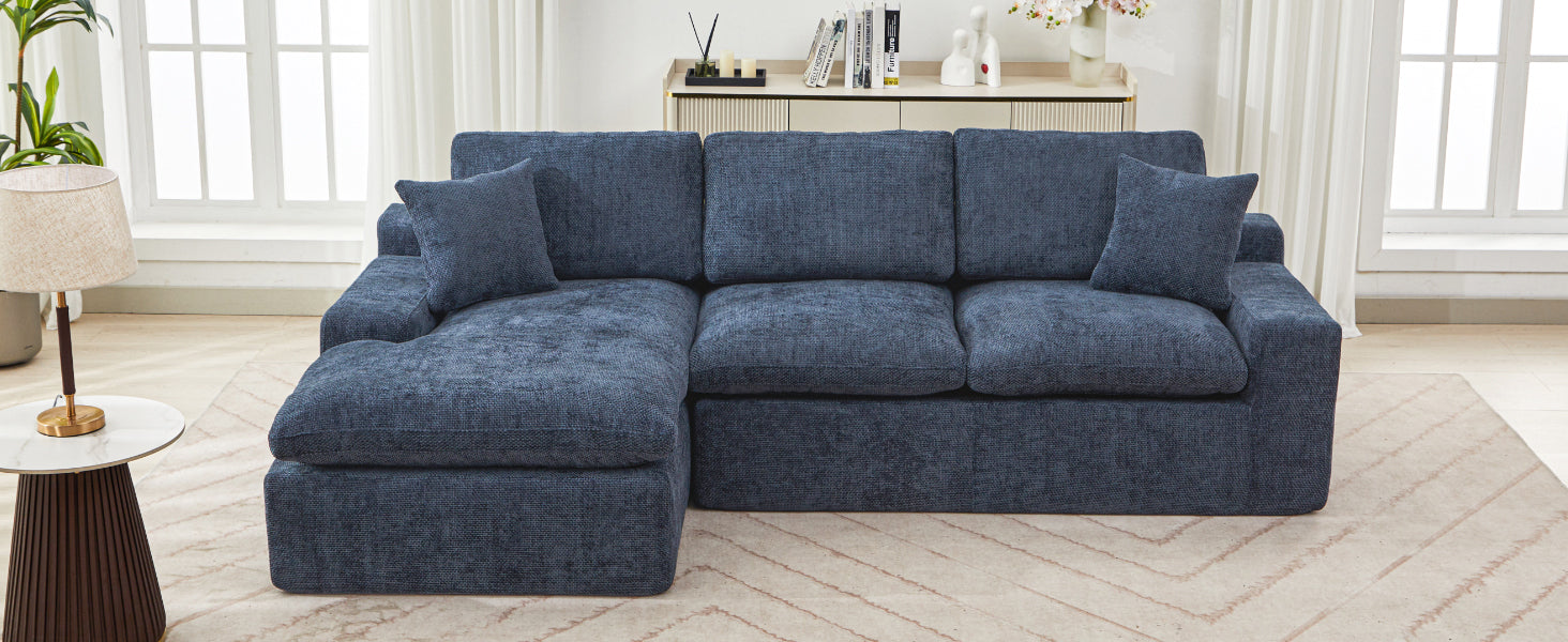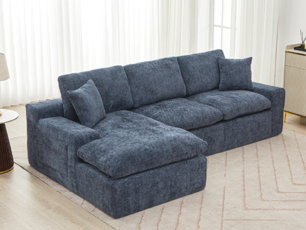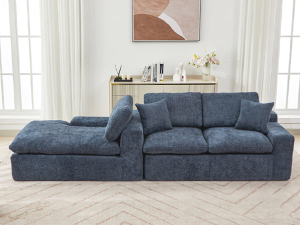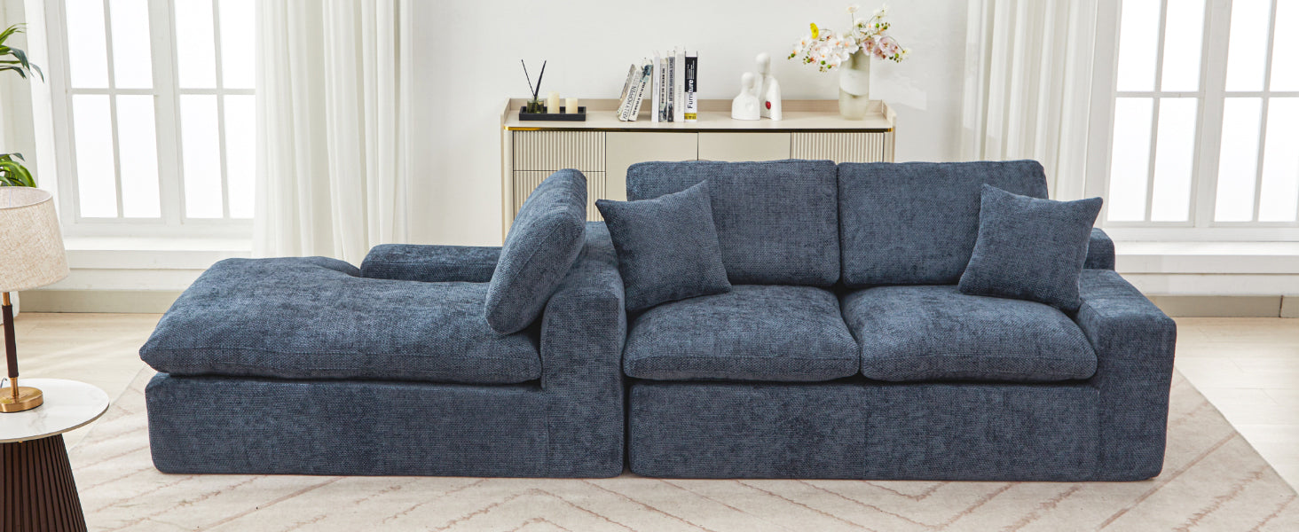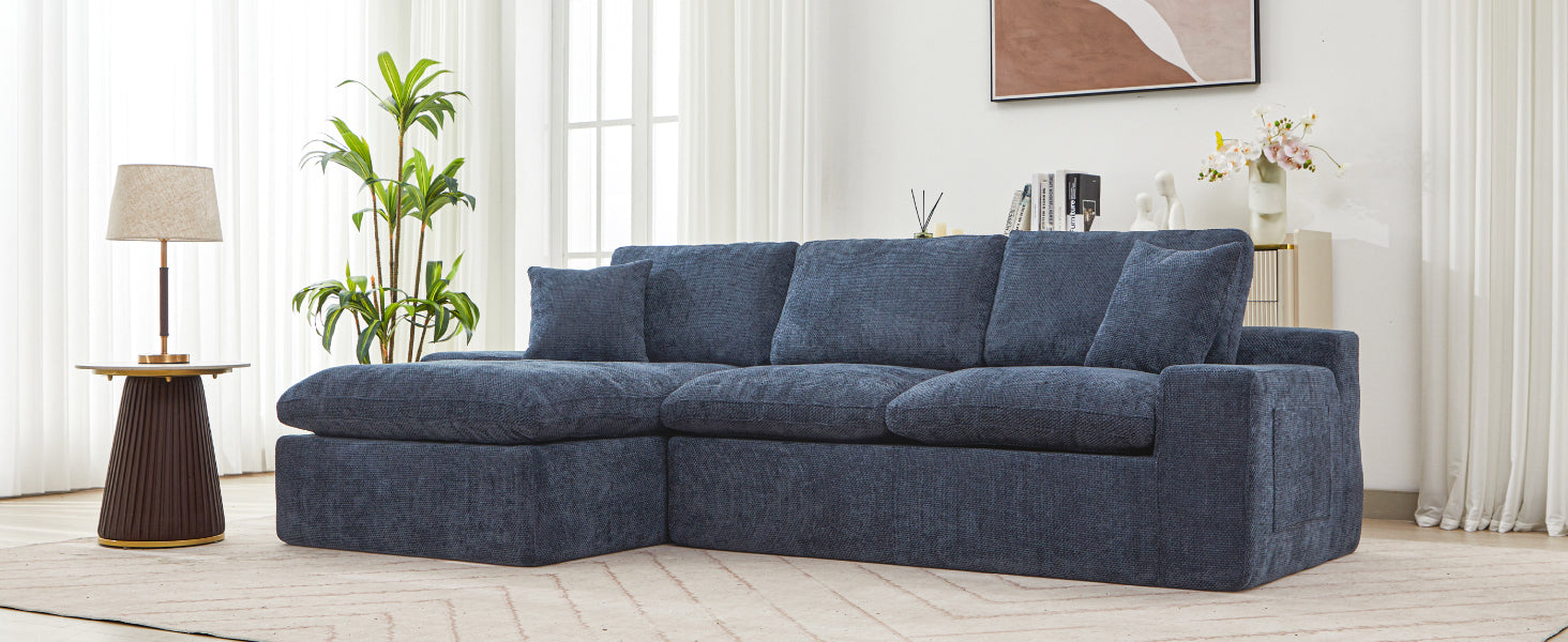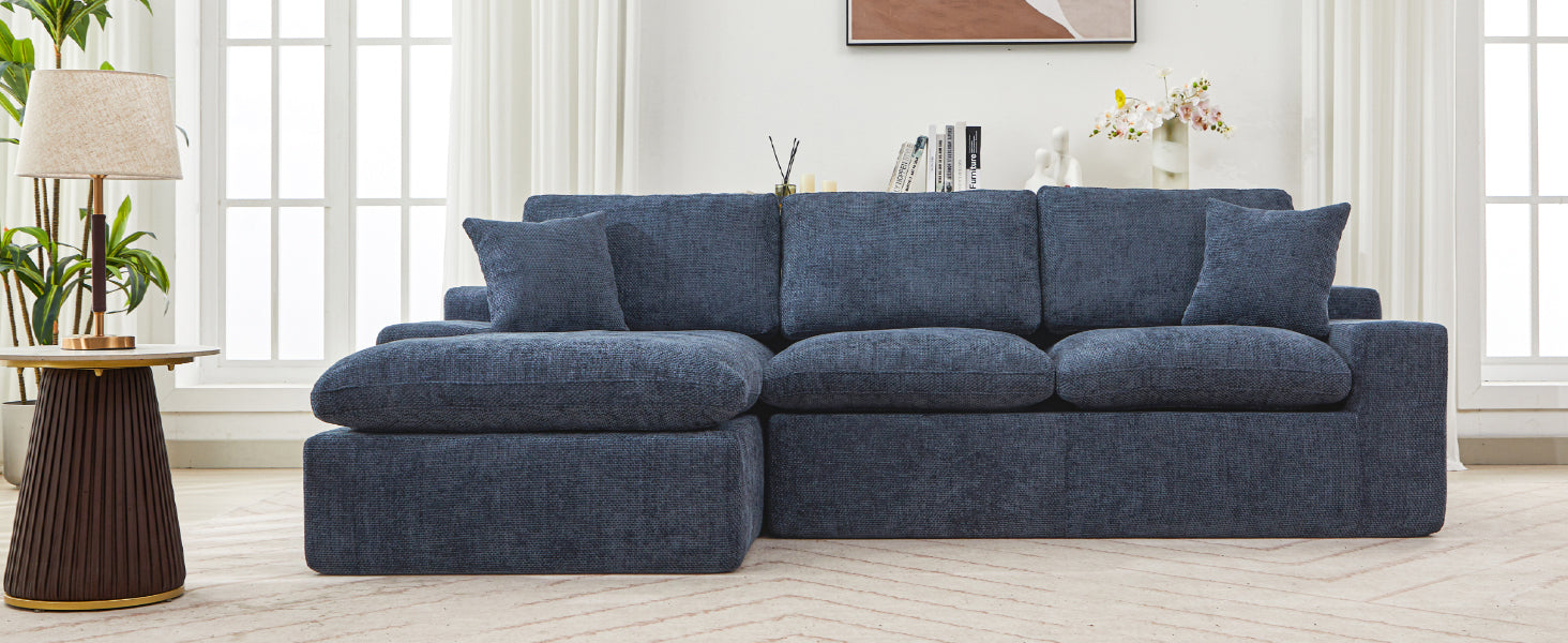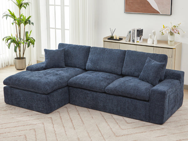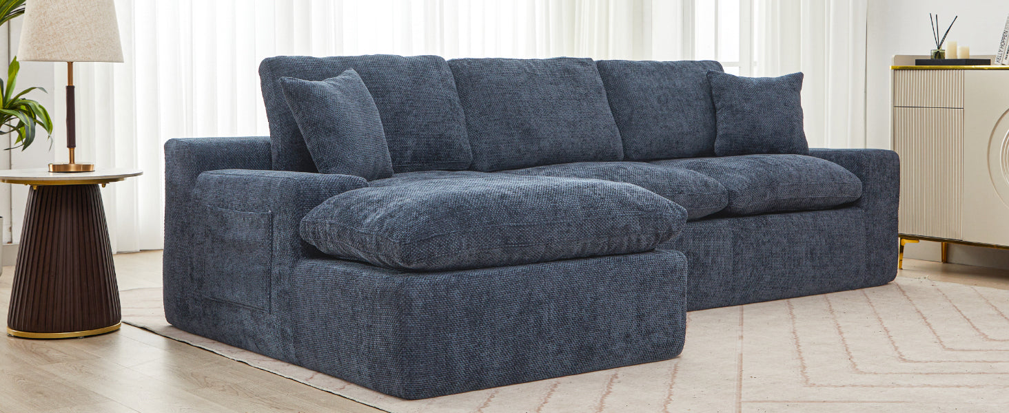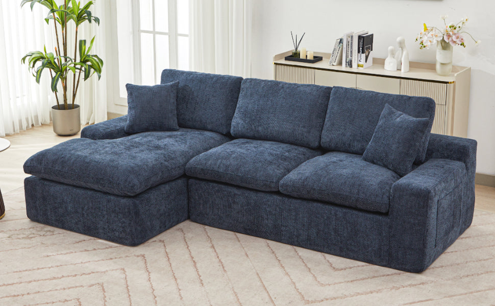Designed for modern living, this modular sofa offers unmatched flexibility, comfort, and style. Its fully modular structure allows you to easily customize layouts—from an L-shape to a straight-line sofa or even a cozy bed—perfectly adapting to any space. The double-layer cushioning, with ultra-soft compression foam over a firmer support base, ensures a plush yet resilient seating experience. Upholstered in premium chenille fabric, the sofa combines a rich, inviting texture with exceptional durability. Featuring an extra-deep 21.5-inch seat, smart side storage pockets, and two matching throw pillows, this sofa is crafted to deliver everyday comfort, practical functionality, and timeless appeal for any home.