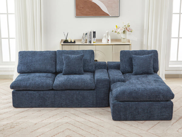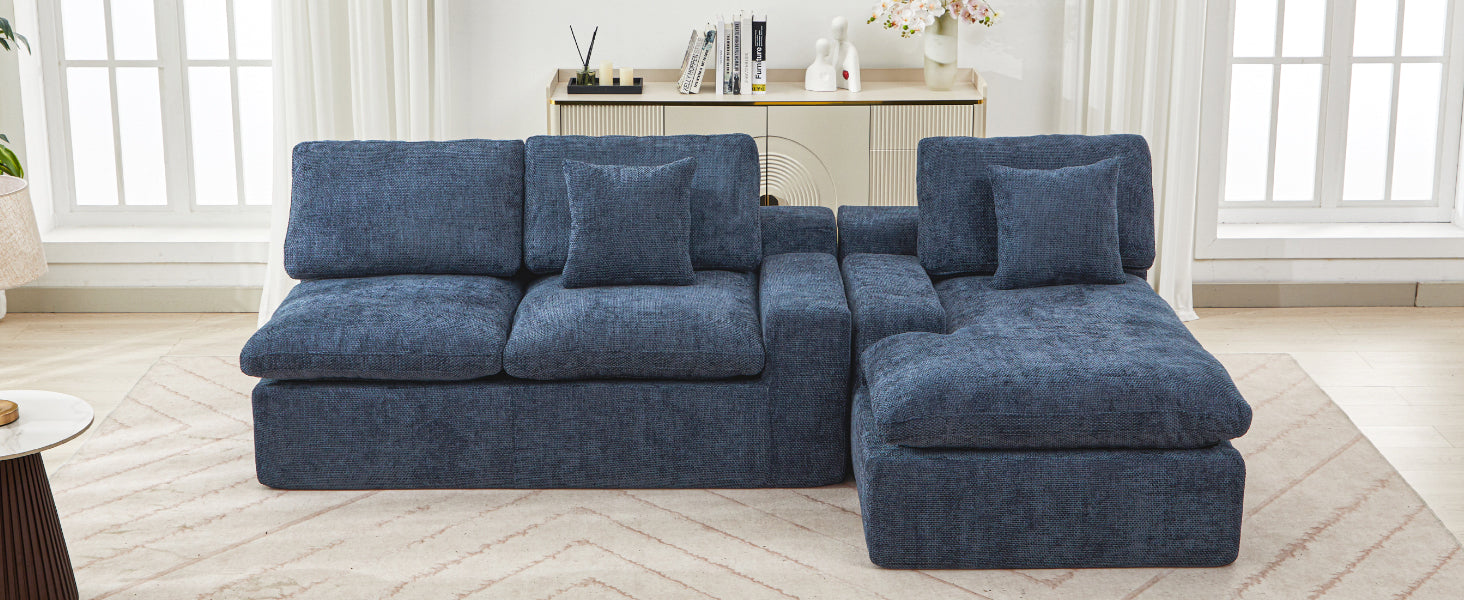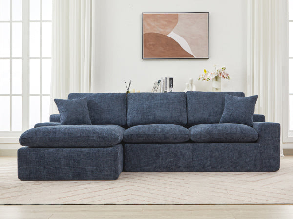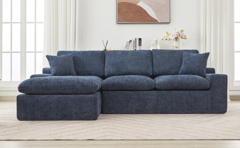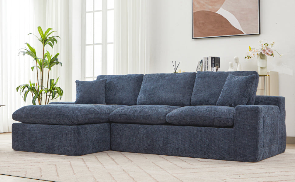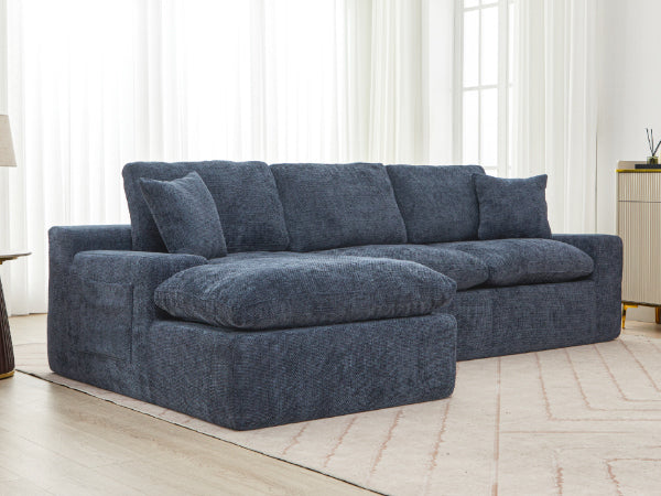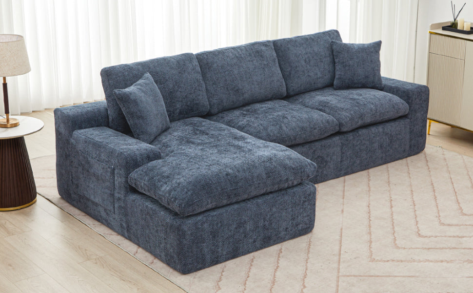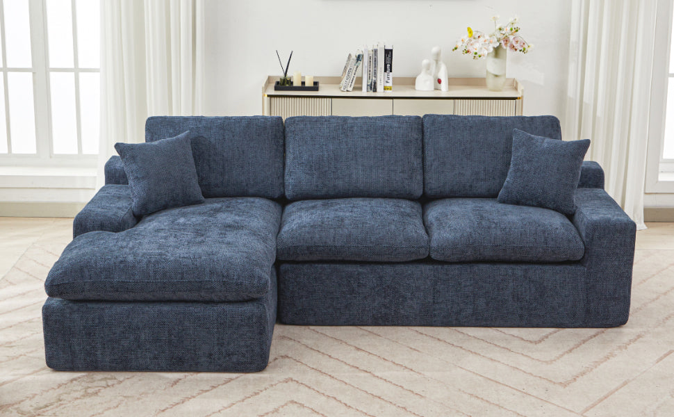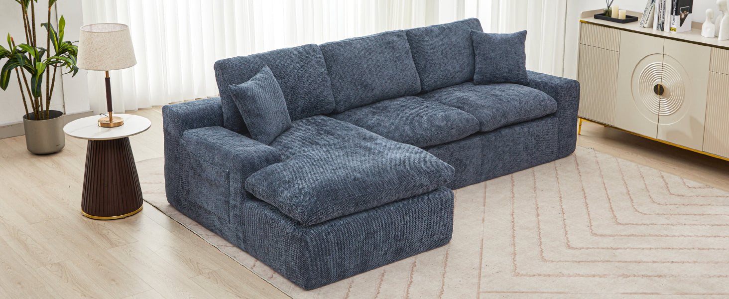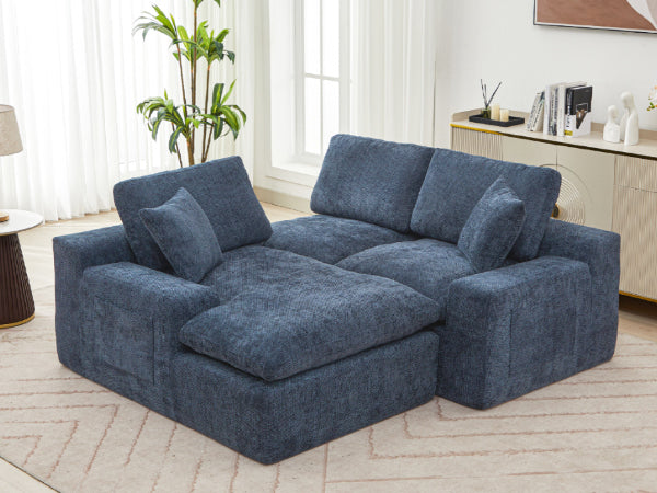 Designed for modern living, this modular sofa offers unmatched flexibility, comfort, and style. Its fully modular structure allows you to easily customize layouts—from an L-shape to a straight-line sofa or even a cozy bed—perfectly adapting to any space. The double-layer cushioning, with ultra-soft compression foam over a firmer support base, ensures a plush yet resilient seating experience. Upholstered in premium chenille fabric, the sofa combines a rich, inviting texture with exceptional durability. Featuring an extra-deep 21.5-inch seat, smart side storage pockets, and two matching throw pillows, this sofa is crafted to deliver everyday comfort, practical functionality, and timeless appeal for any home.