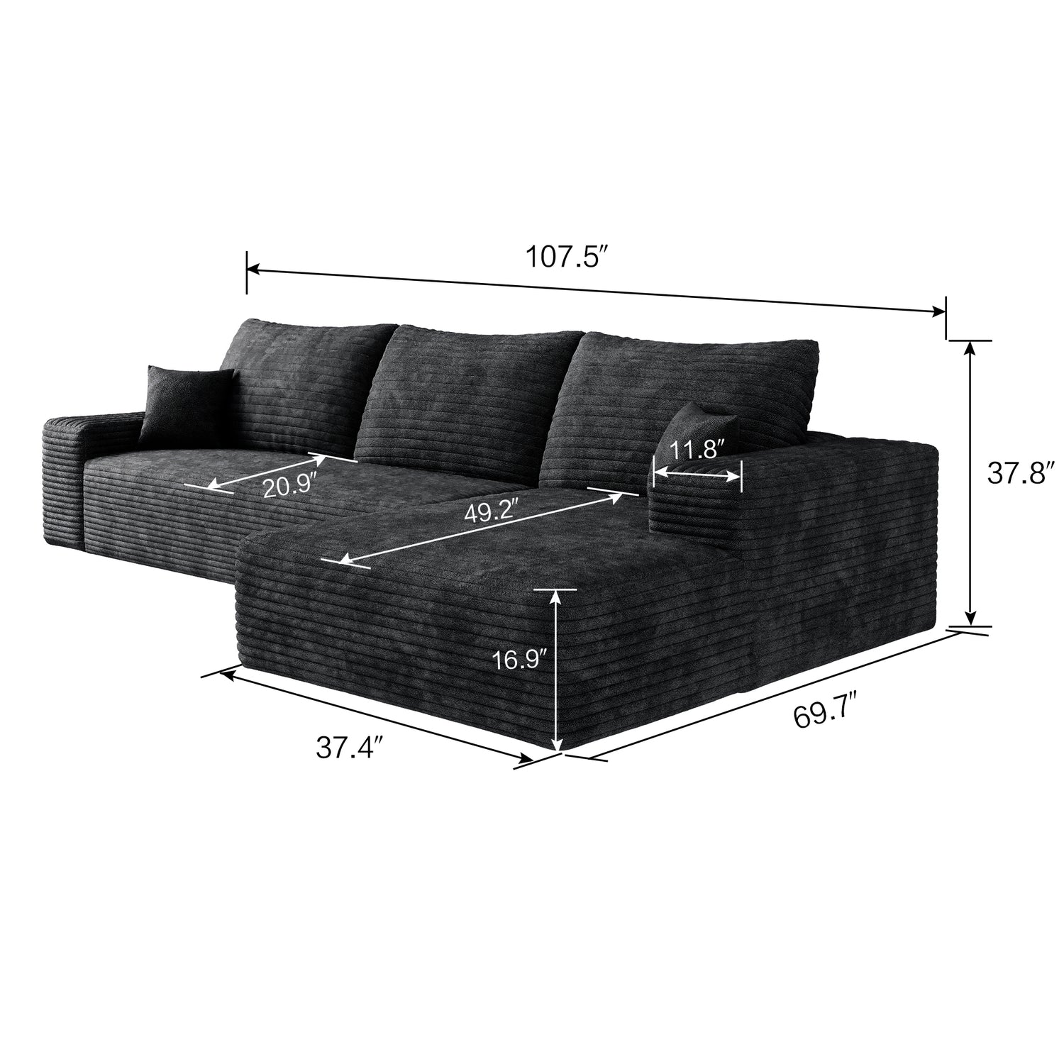 - Modular Sectional Sofa:This sectional sofa featuring a sleek design, clean lines, and high-quality plush corduroy Fabric,This sectional set maximizes space when placed against a wall,this corner sofa effortlessly adds a timeless and sophisticated touch to your home. Designed to be the focal point of attention, it's an ideal choice for elevating the ambiance of living rooms, apartments, and bedrooms.