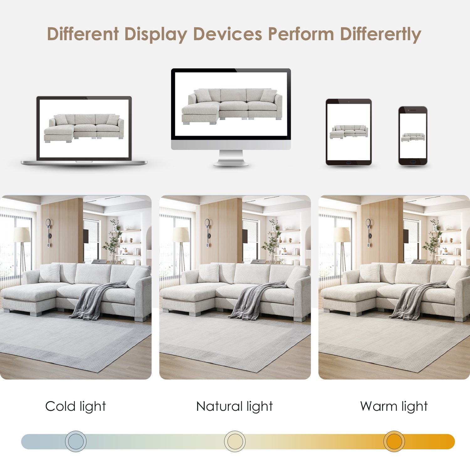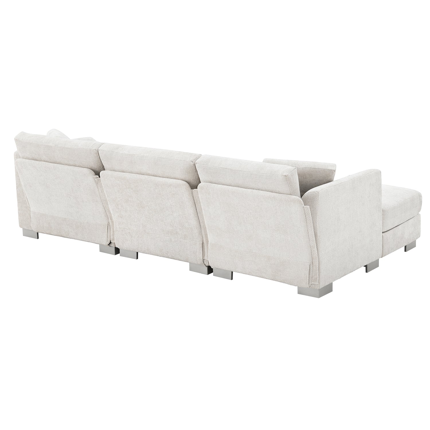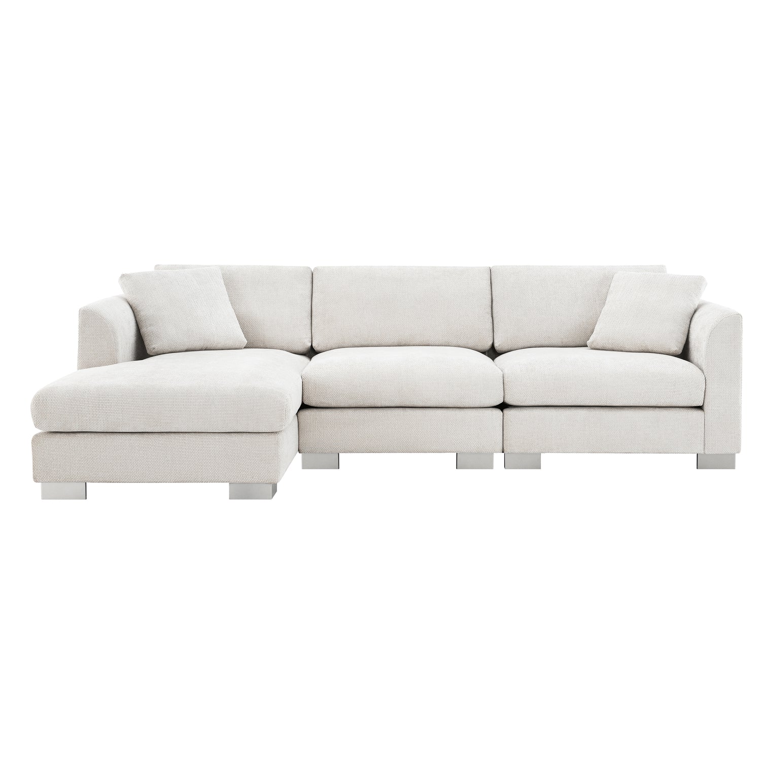 The sofa with chaise can be especially beneficial for people who want to relax and unwind after a long day and provide a sense of luxury and elegance to the overall design of the sofa, making it a stylish and functional addition to any living space.Silver aluminum feet improve the integrity of the sofa, so that the overall color scheme is more coordinated, high-grade, better improve the taste of your living environment!