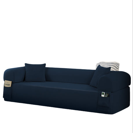 Spring Sofa with High-Quality Fabric, Pillows & Storage - Blue