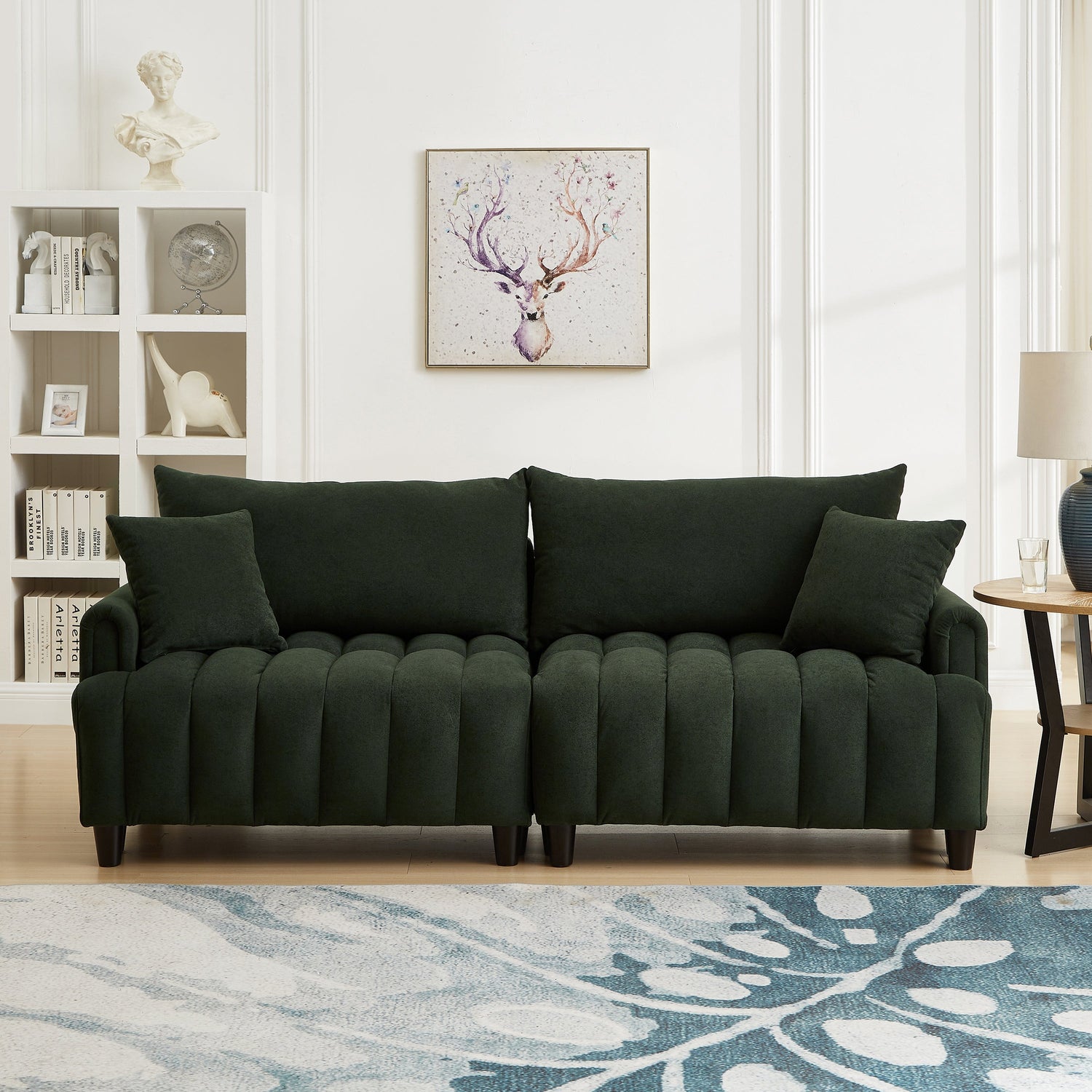 83'' Futon Sofa Bed with Polyester Fabric and 2 PillowsDark Green
