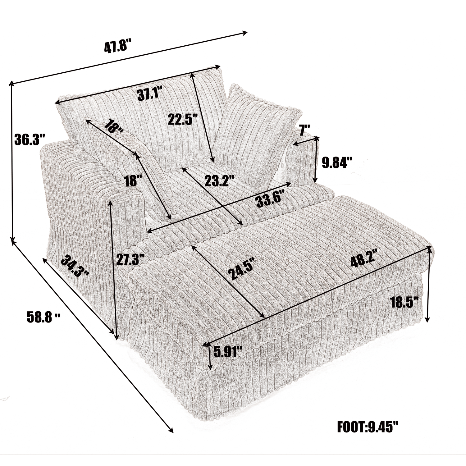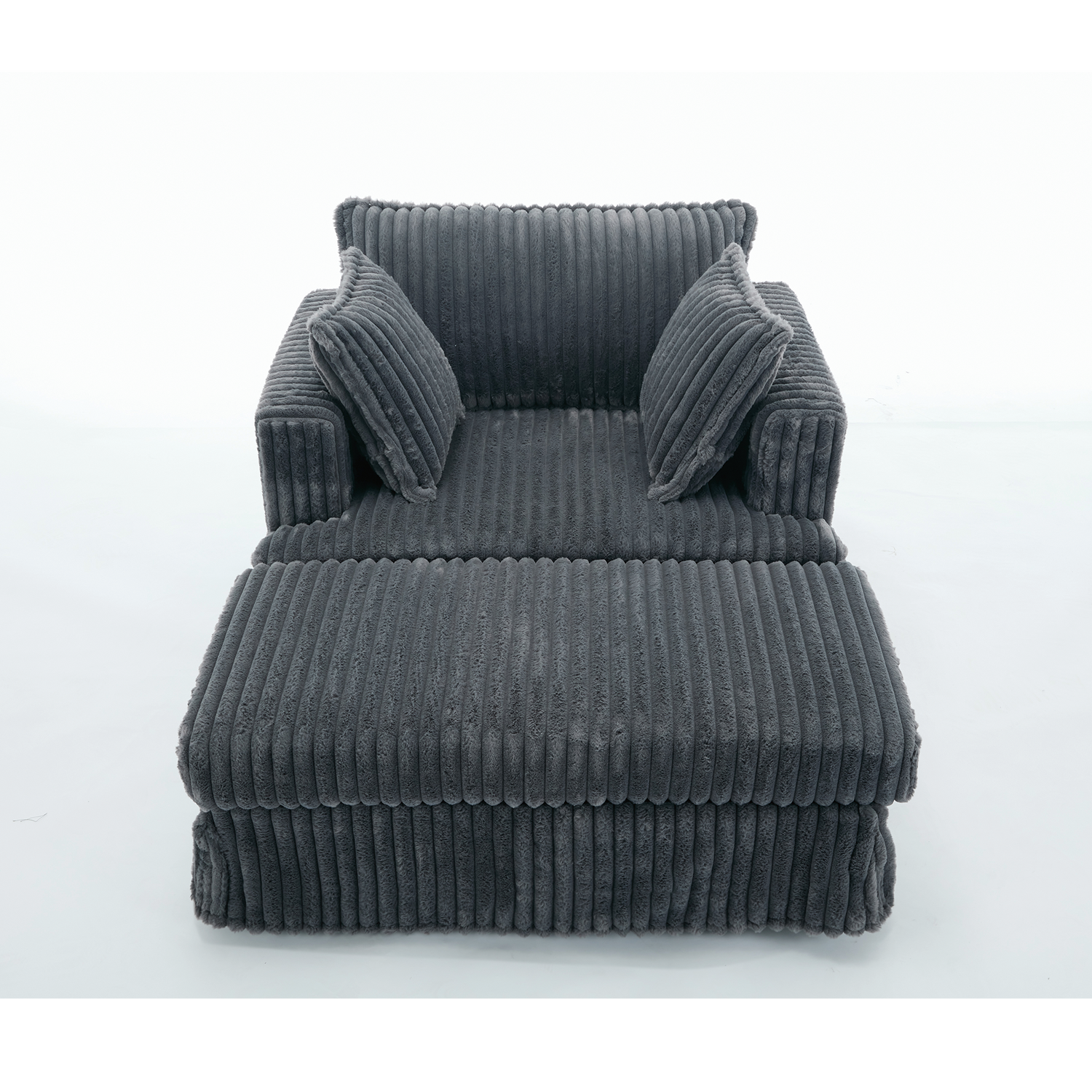 This oversized corduroy chaise lounge with ottoman is designed for living rooms and small spaces. It offers deep seating comfort and a modern aesthetic, blending style with function in your primary living area.