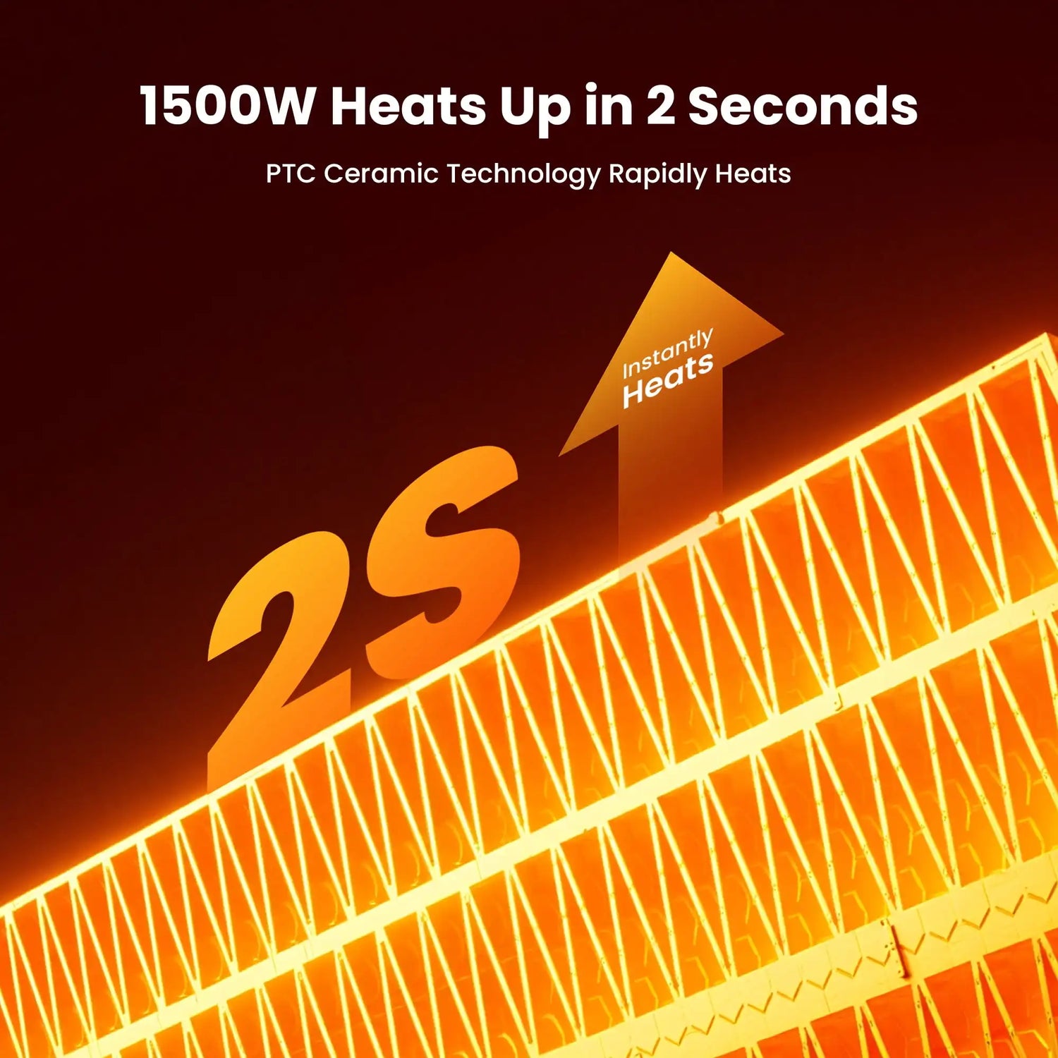 Enjoy fast, efficient warmth with a 1500W space heater designed for comfort and convenience in bedrooms and living spaces. Featuring PTC ceramic heating, wide oscillation, and remote control, this electric heater delivers reliable heat exactly when you need it.