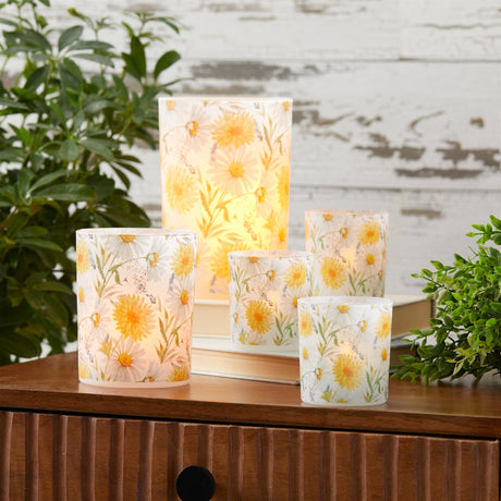 LED Floral Frosted Glass Luminary