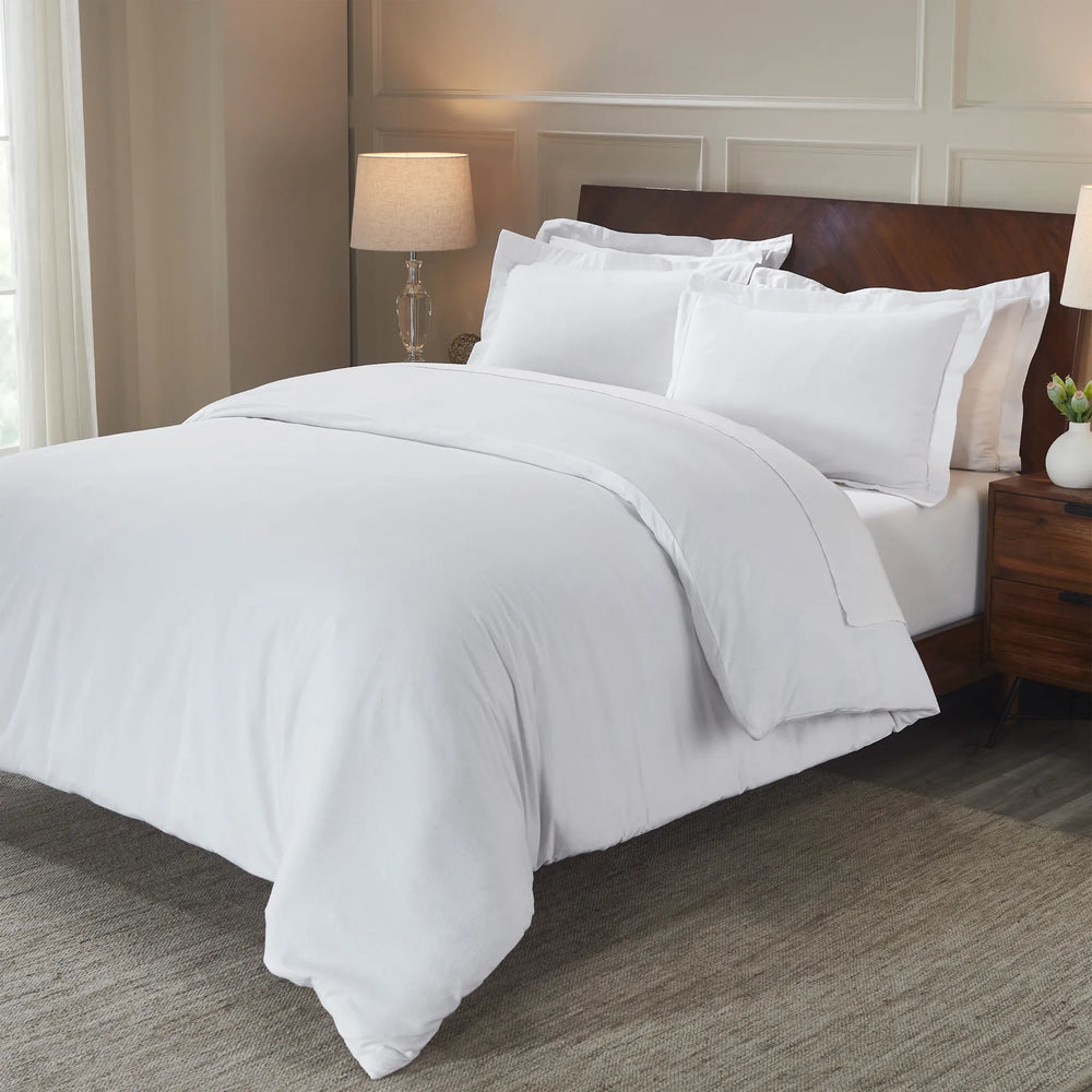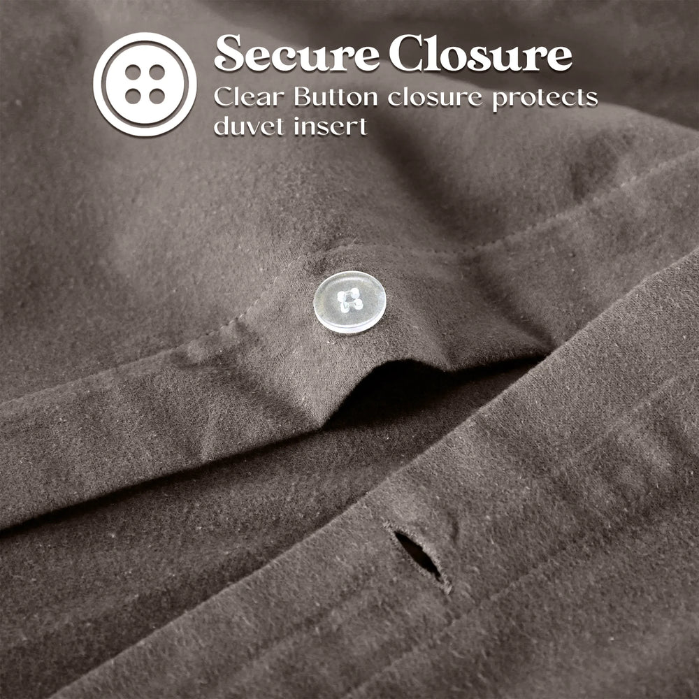 Perfect for colder nights, curl up to the softness and cozy comfort of our Flannel Cotton Duvet Cover Set. Crafted from naturally soft brushed flannel cotton, this set has a smooth feel and comfortable design. The fuzzy cotton fibers are breathable, plush, and more durable than other varieties of cotton. To make sure your duvet insert or comforter doesn't shift or come undone, it securely fastens with clear, hidden buttons. For coordinating style, this set includes matching pillow shams.