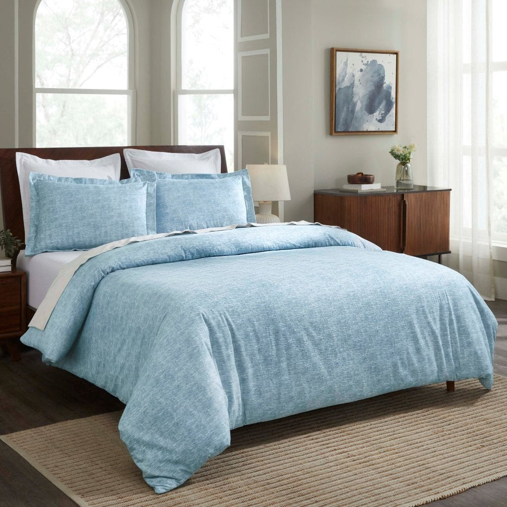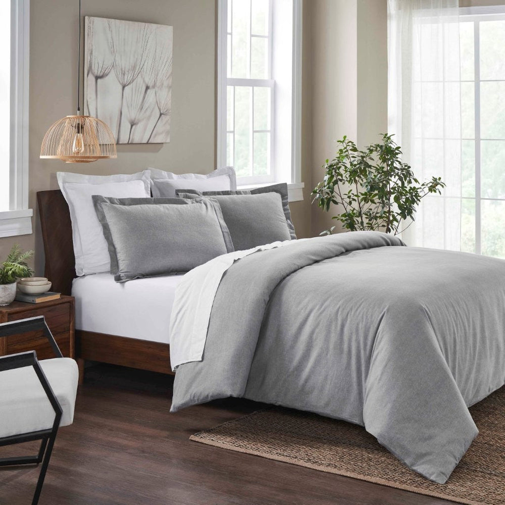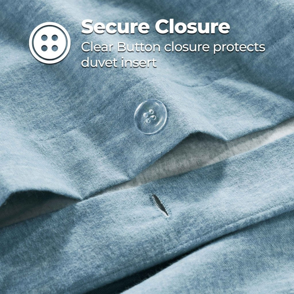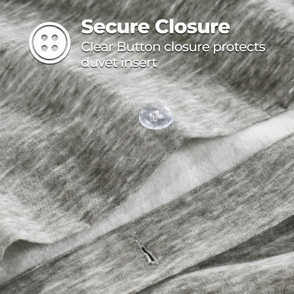 - Additional Features: Chambray plain weave is naturally soft to the touch and gets softer with each wash; Insulating and breathable to keep you warmer and more comfortable when the temperature drops. Elevate your style with the distinctive two-tone look of melange fabric – a lightweight, wrinkle-resistant choice that exudes sophistication. Matching pillow sham(s) included to coordinate bedding ensemble; Fastens with buttons to make sure your duvet insert or comforter doesn't shift or come undone.