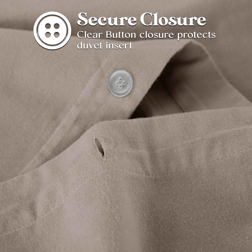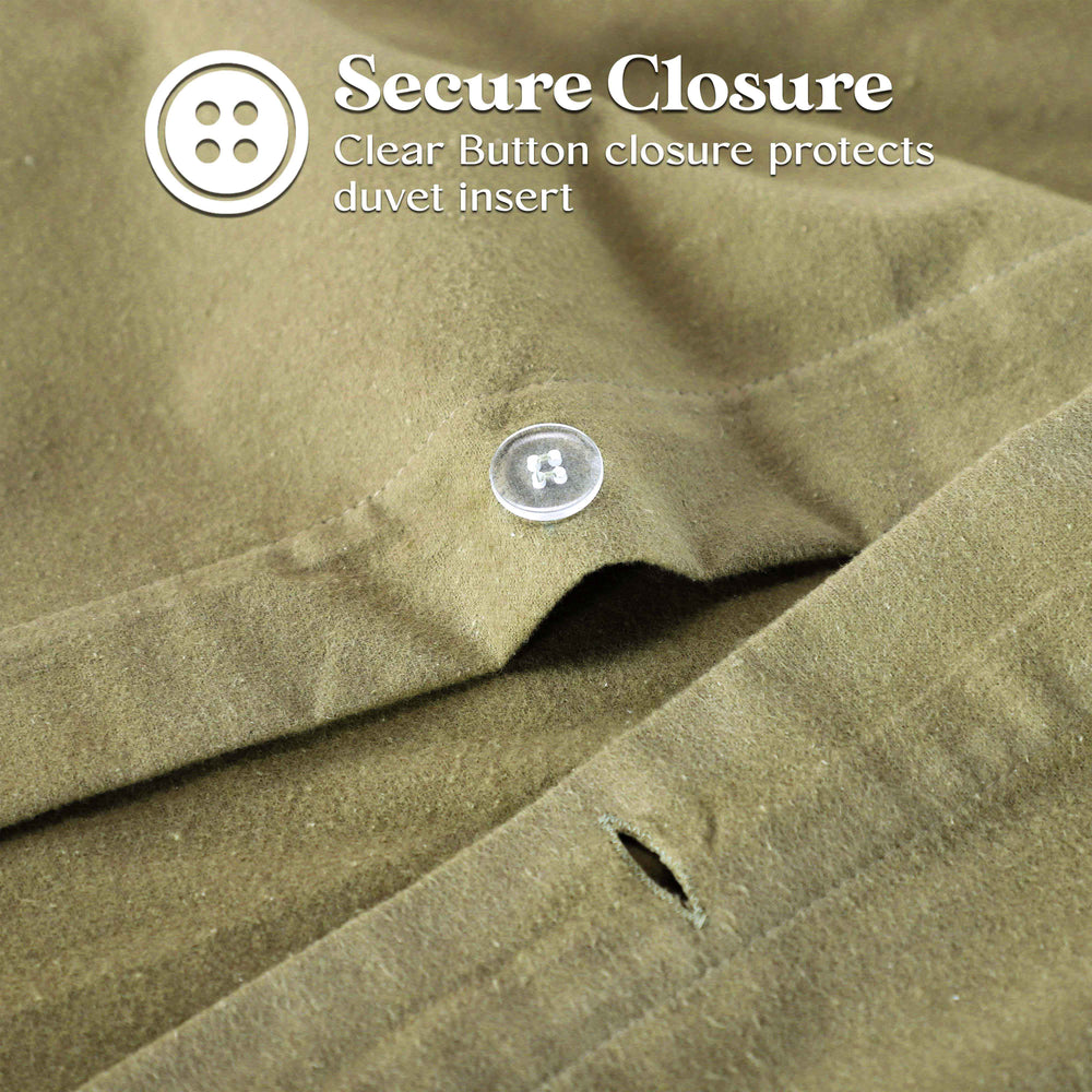 - Additional Information: Naturally soft to the touch and gets softer with each wash; Insulating and breathable to keep you warmer and more comfortable when the temperature drops. Elevate your style with the distinctive look of Cotton Flannel fabric – a warm, wrinkle-resistant choice that exudes comfort. Matching pillow sham(s) included to coordinate bedding ensemble; Fastens with buttons to make sure your duvet insert or comforter doesn't shift or come undone.