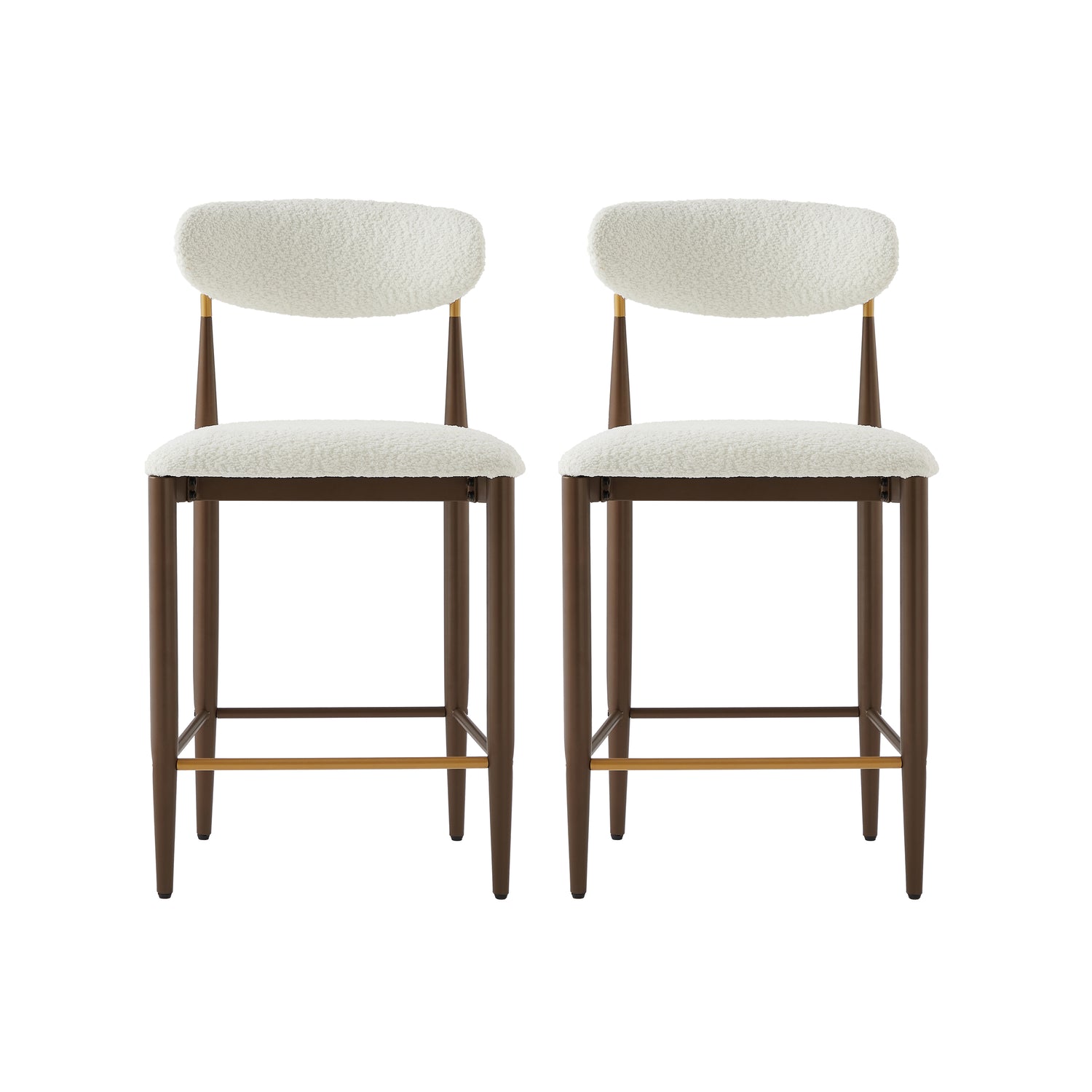 - Take your interior decor up to the next level. Featuring smooth upholstery and sleek coffee gold frames with stunning gold accents, our striking set of two counter stools offer a chic modern look to any home. The frames are crafted from durable iron and feature an exquisite toothpick design, perfectly complementing the open backrests. Our counter stools give you and your guests a stylish and sturdy place to dine effortlessly at your kitchen nook or to enjoy a few cocktails with your friends.