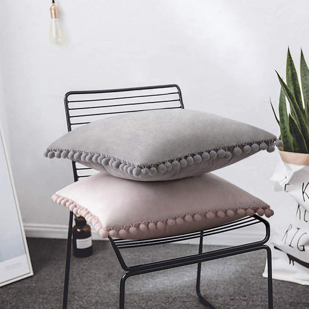 1 x 20"x20" Velvet Pom-Pom Pillow Cover (your choice of color)