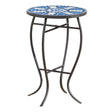 Outdoor Round Side Table with Mosaic Style Top and Curved Iron Legs - Blue / Matte Black
