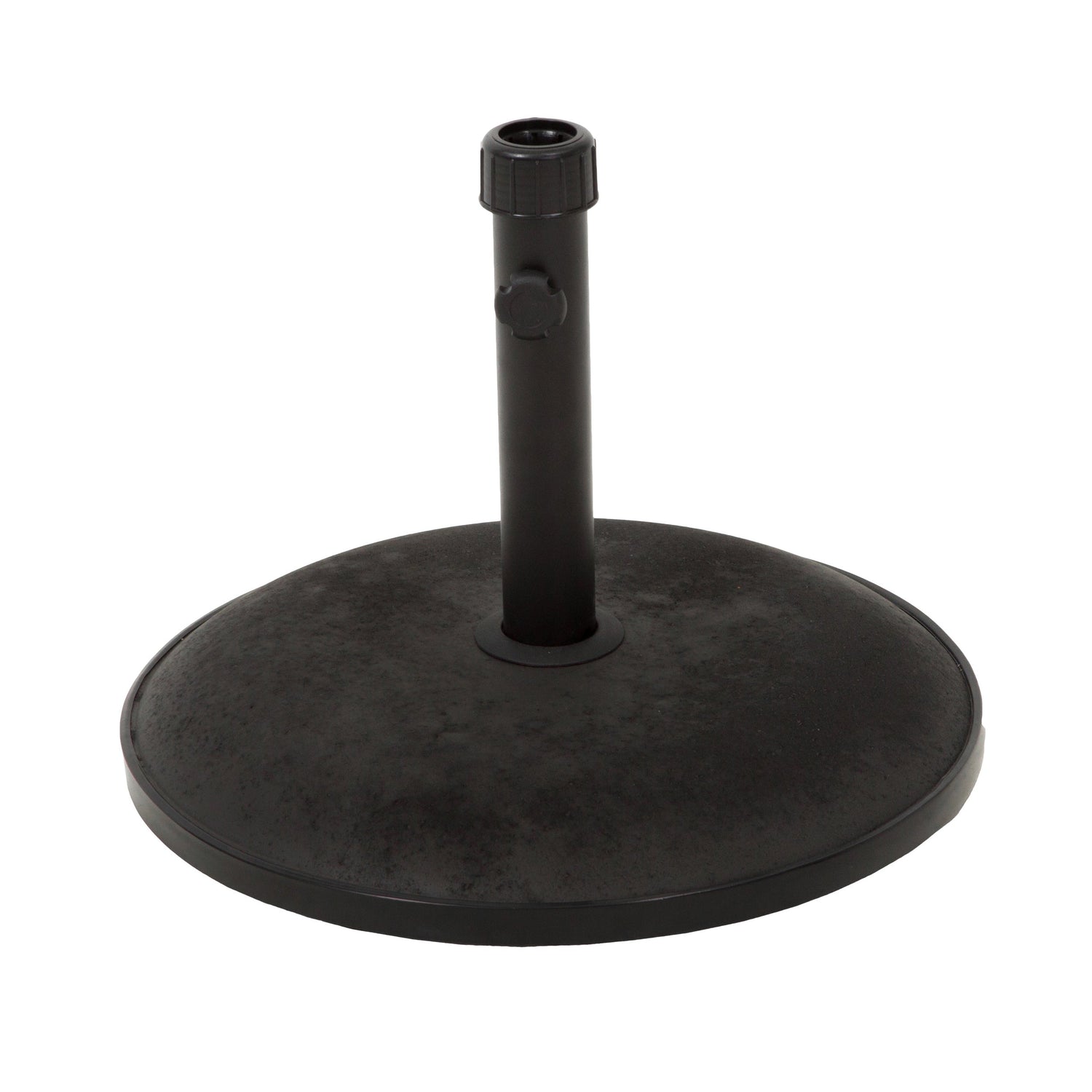 This concrete umbrella base with an iron support pole offers stability and style for outdoor spaces. It is ideal for patios or gardens, providing a secure foundation for umbrellas up to 5 feet.