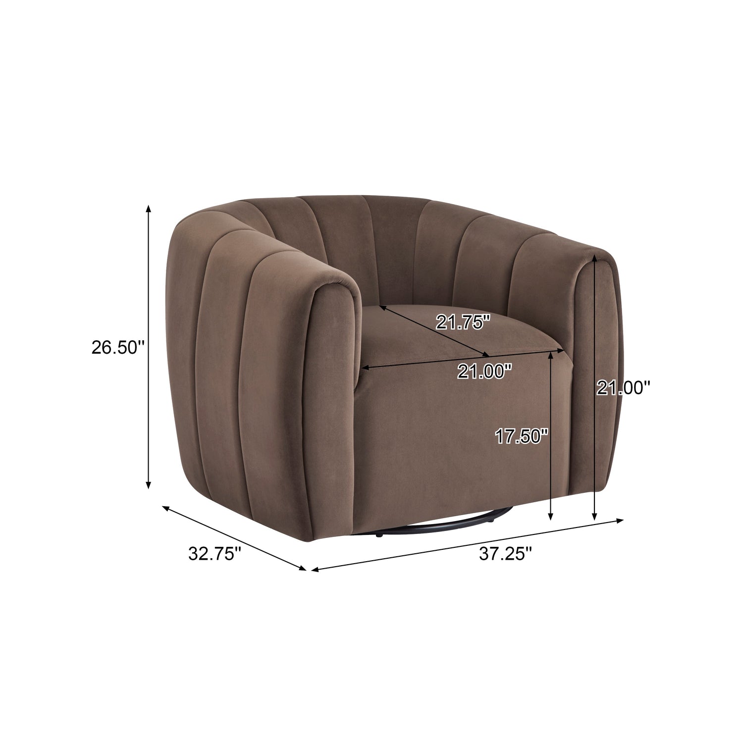 The GigaTech Swivel Chair features plush dark brown velvet upholstery paired with a sturdy iron frame, ideal for living rooms or lounge areas. This chair combines functionality with refined style for versatile seating.