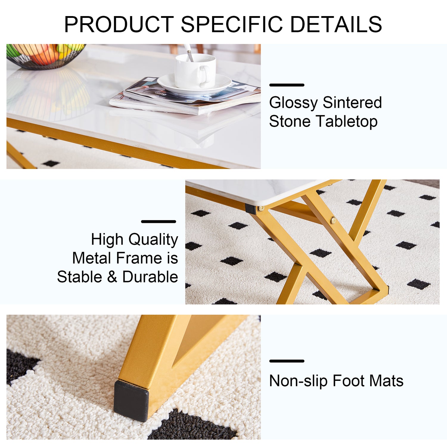 • Contemporary Aesthetic Design: The white marble patterned rock tabletop, combined with golden metal legs, is not only stylish in design, but also stable and durable, with stronger load-bearing capacity, adding a touch of fashion to your living room.