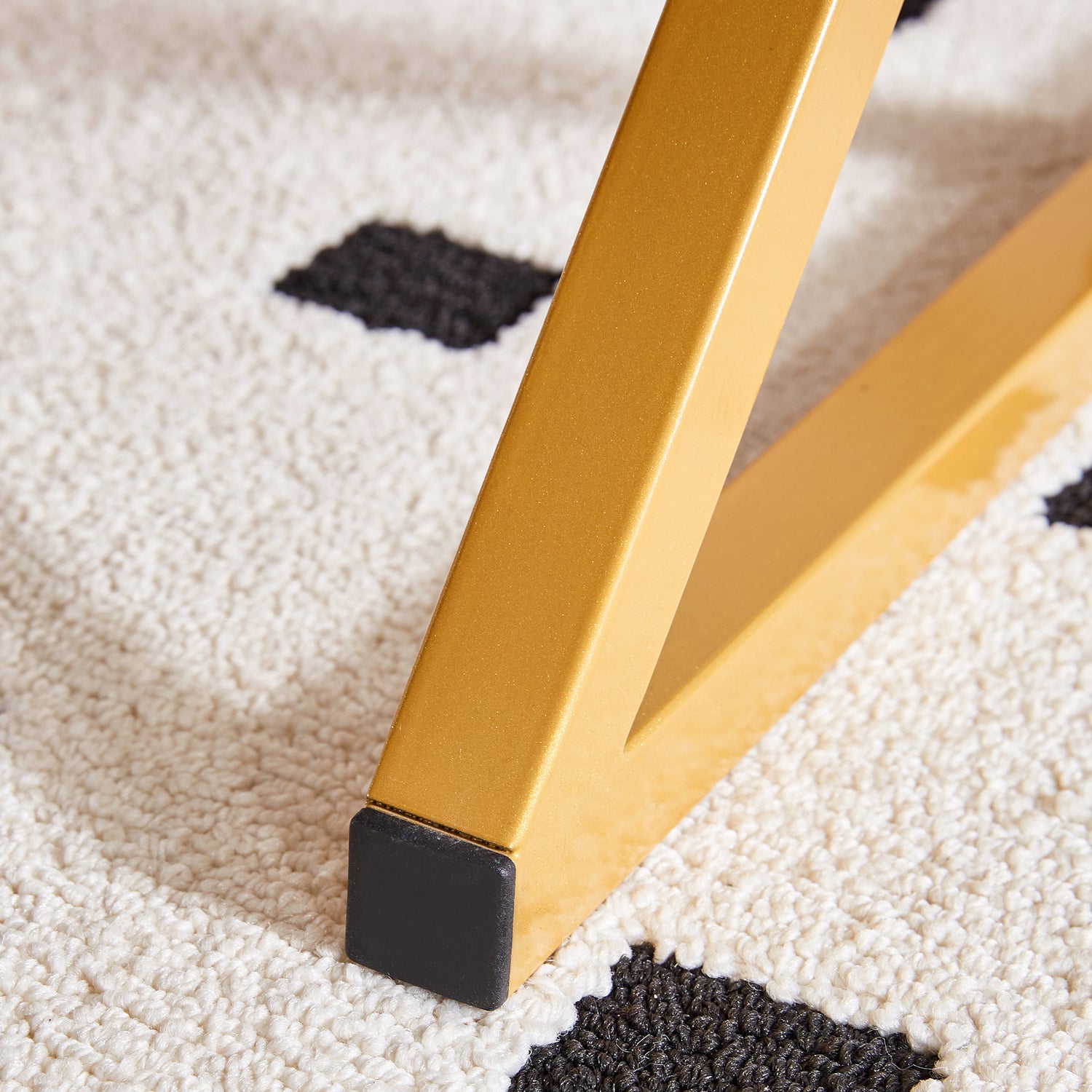 • Exquisite Craftsmanship: The sintered stone table top is crafted with advanced production techniques, ensuring the flatness and durability of the surface, while the finely processed golden metal legs showcase the exquisite craftsmanship of the furniture.