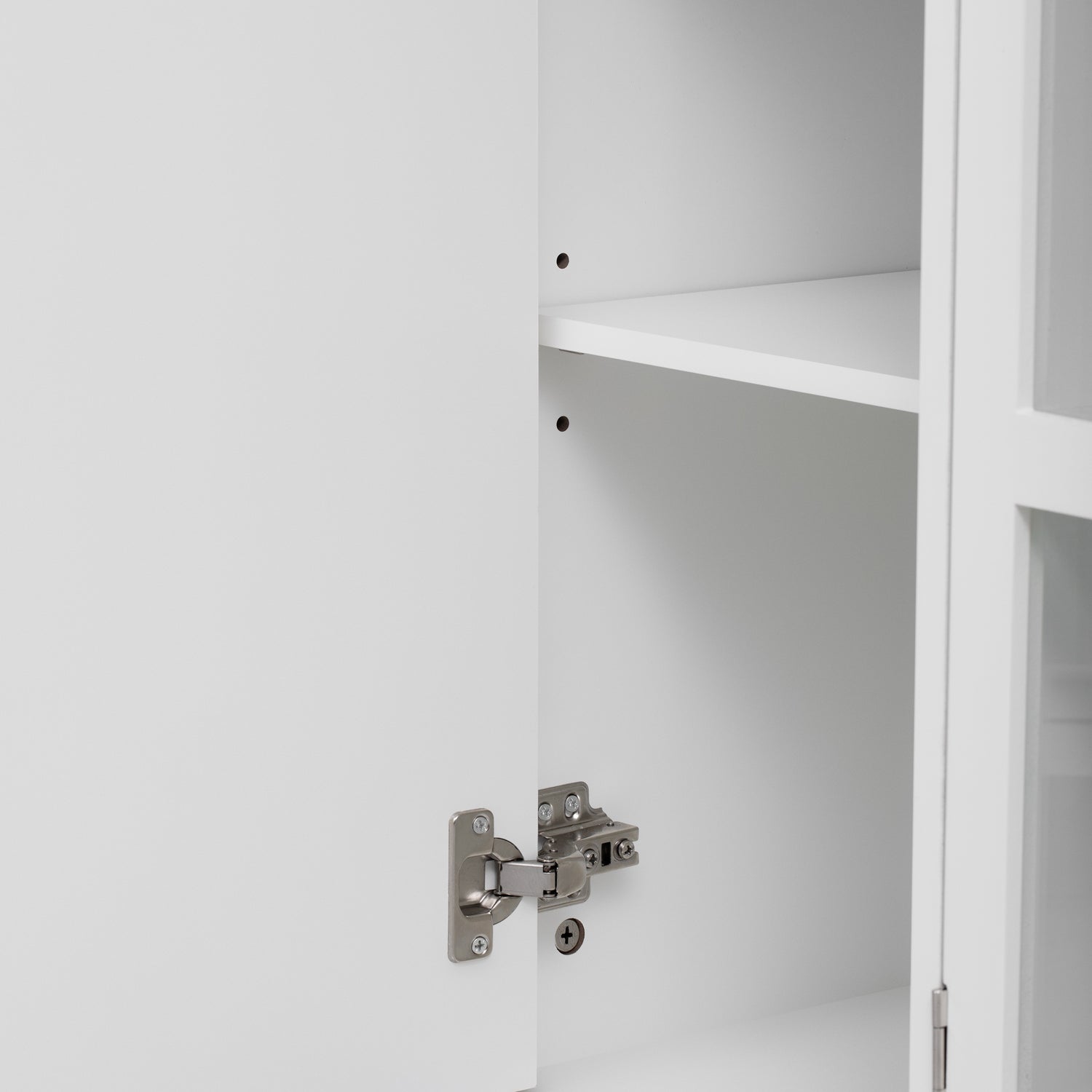 - Including three spacious cabinets, the middle cabinet features a glass door that clearly displays the items inside, making it easy for you to quickly find what you need. It also adds a touch of transparency and an artistic atmosphere to the entire home environment. The cabinet doors on both sides are symmetrically carved with patterns, and each cabinet contains an adjustable shelf that can be moved up and down according to your personal requirements.