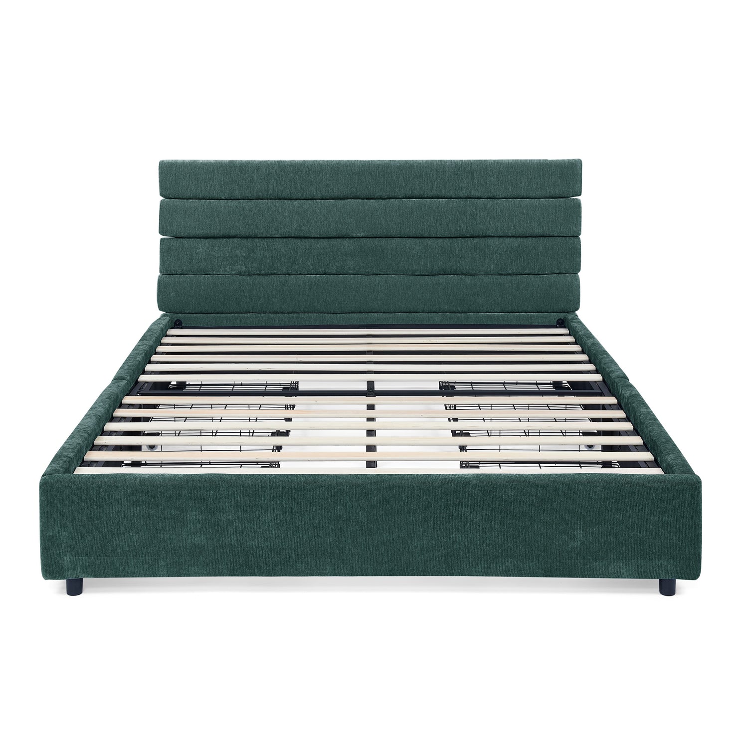 • [Unique Grounded Queen Size Bed] - This grounded upholstered bed will be both a beautiful piece in the room and a place full of fun for your family. This beautiful modern queen bed frame adds a contemporary chic look to your bedroom and is upholstered in thick Velvet fabric to add extra comfort.