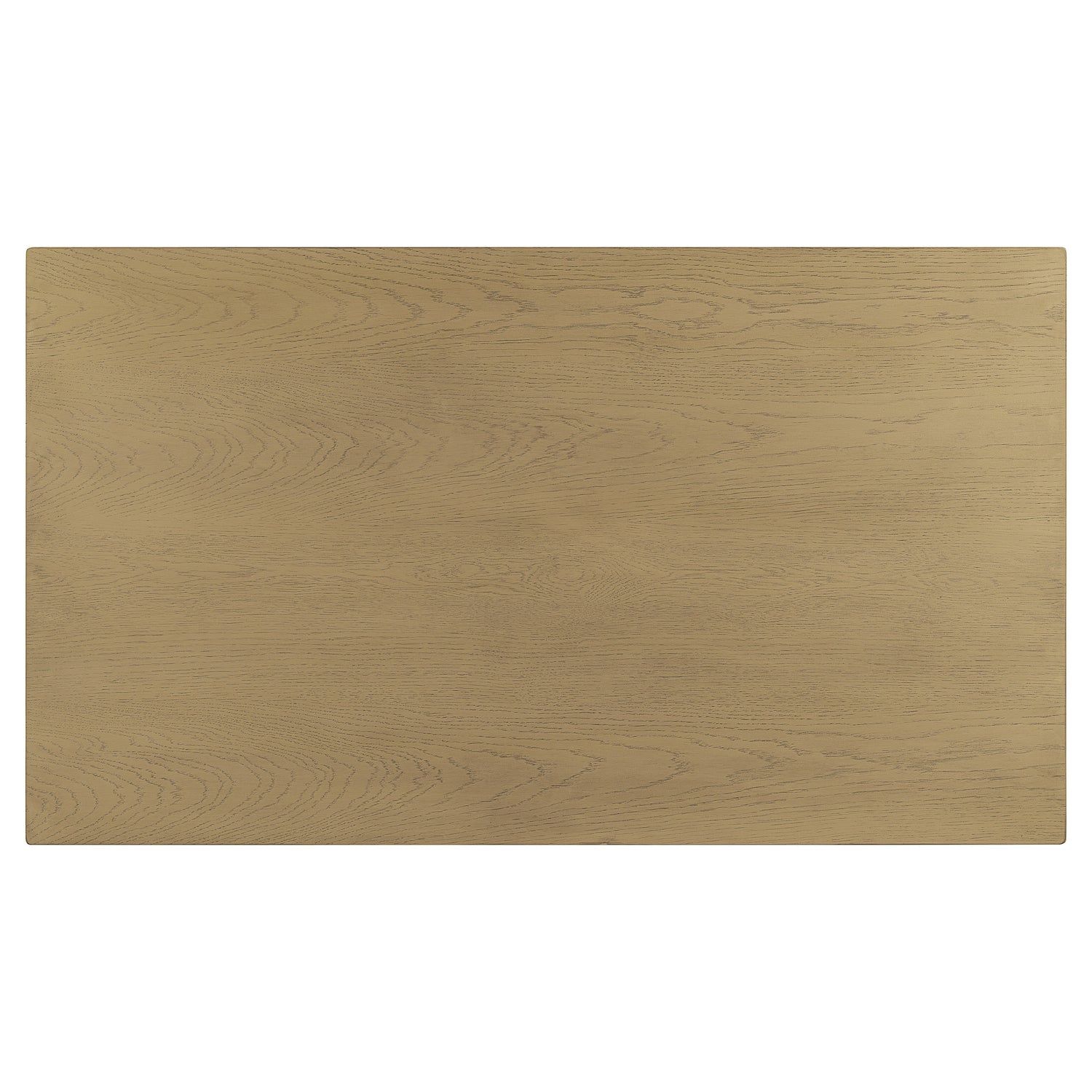• Crafted from durable rubber wood, MDF, and oak veneer, this table delivers strength and stability with a warm brown finish ideal for cozy or rustic interiors.