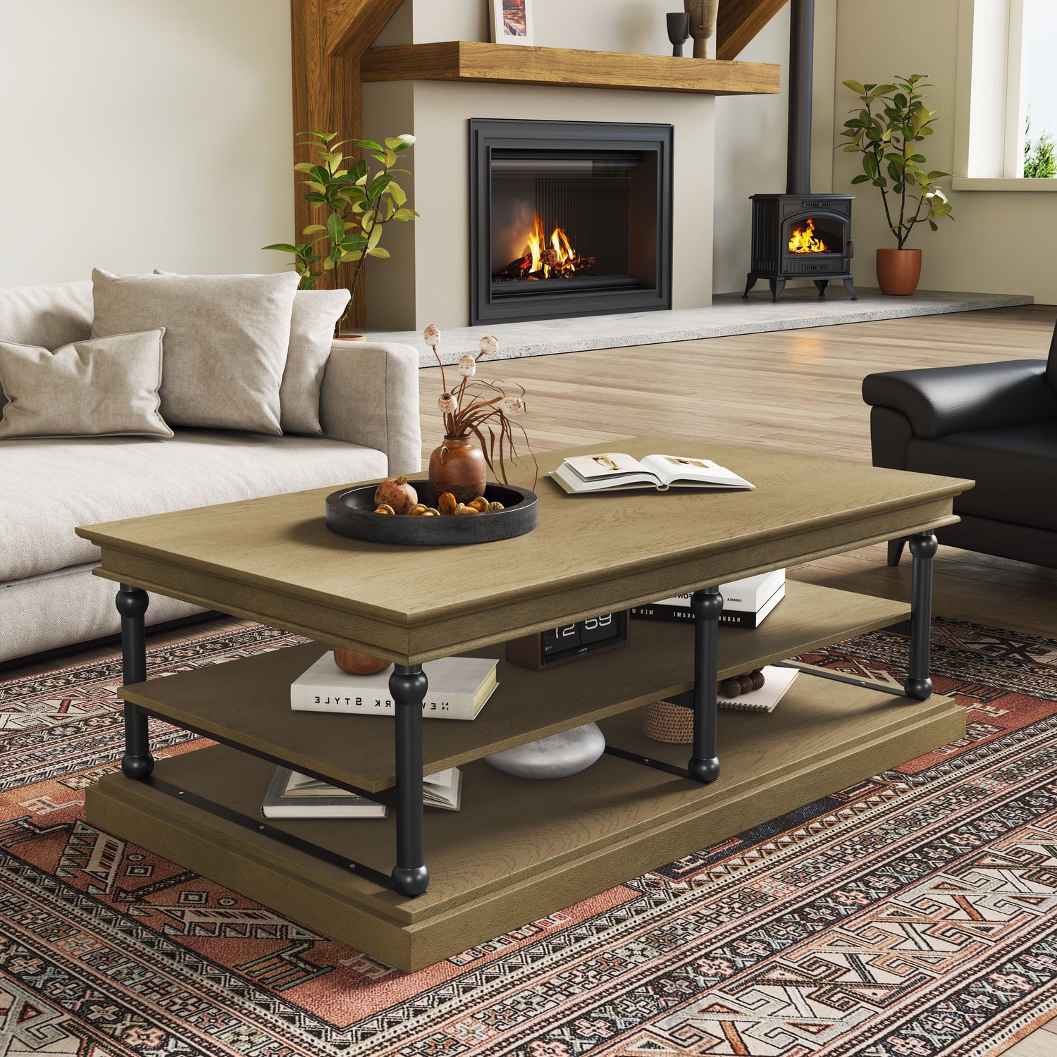 • Spacious 55.1'L x 31.5'W x 19.25'H coffee table with two open shelves offers functional storage for magazines, books, and decorative pieces in any living space.