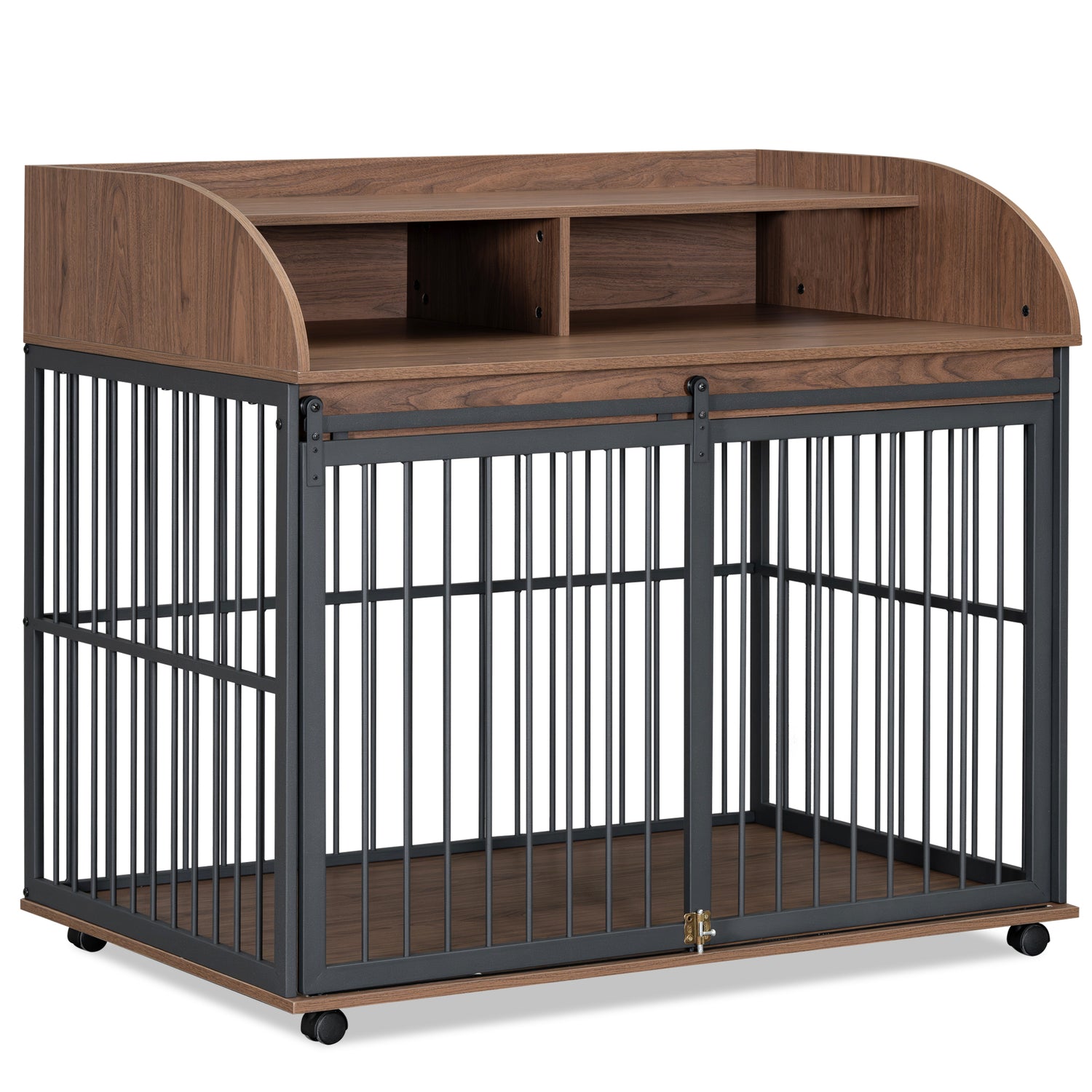 Introducing our Furniture-Style Dog Crate, a blend of elegance and functionality perfect for any home. Its stylish design seamlessly integrates with your decor, doubling as a dog crate, kennel, or chic end table. The sliding barn door ensures easy access while maximizing space efficiency. With ample storage on the double-layer desktop, it accommodates plants, magazines, and pet supplies without clutter. Crafted with a robust steel tube structure, it guarantees durability and safety, while lockable wheels provide mobility and stability. Choose the right size for your medium-sized dog, up to 90 LBS, ensuring both comfort and security.