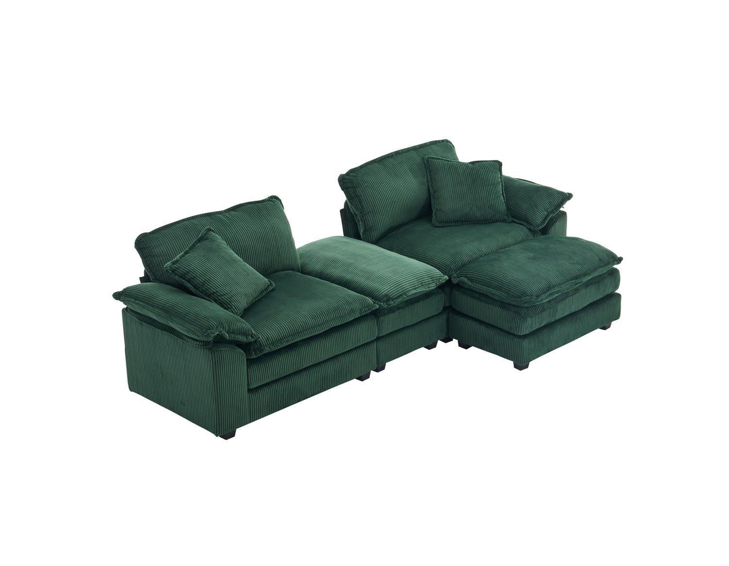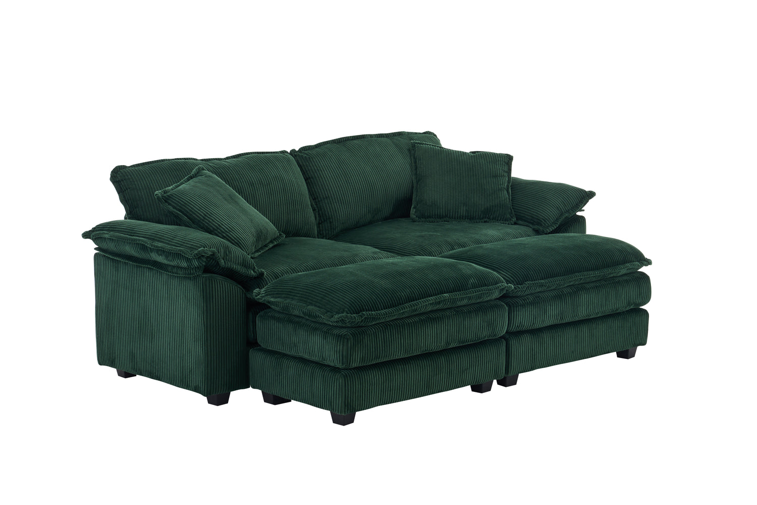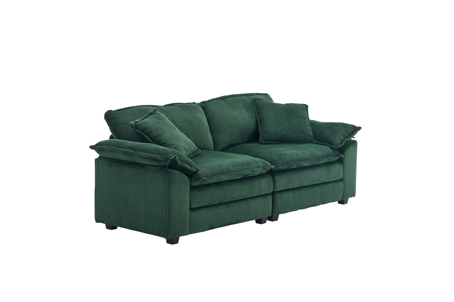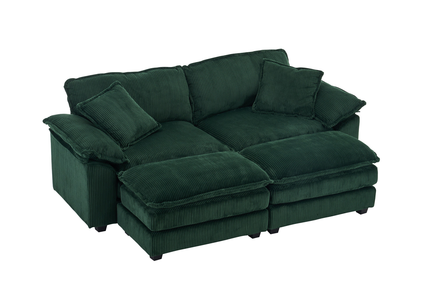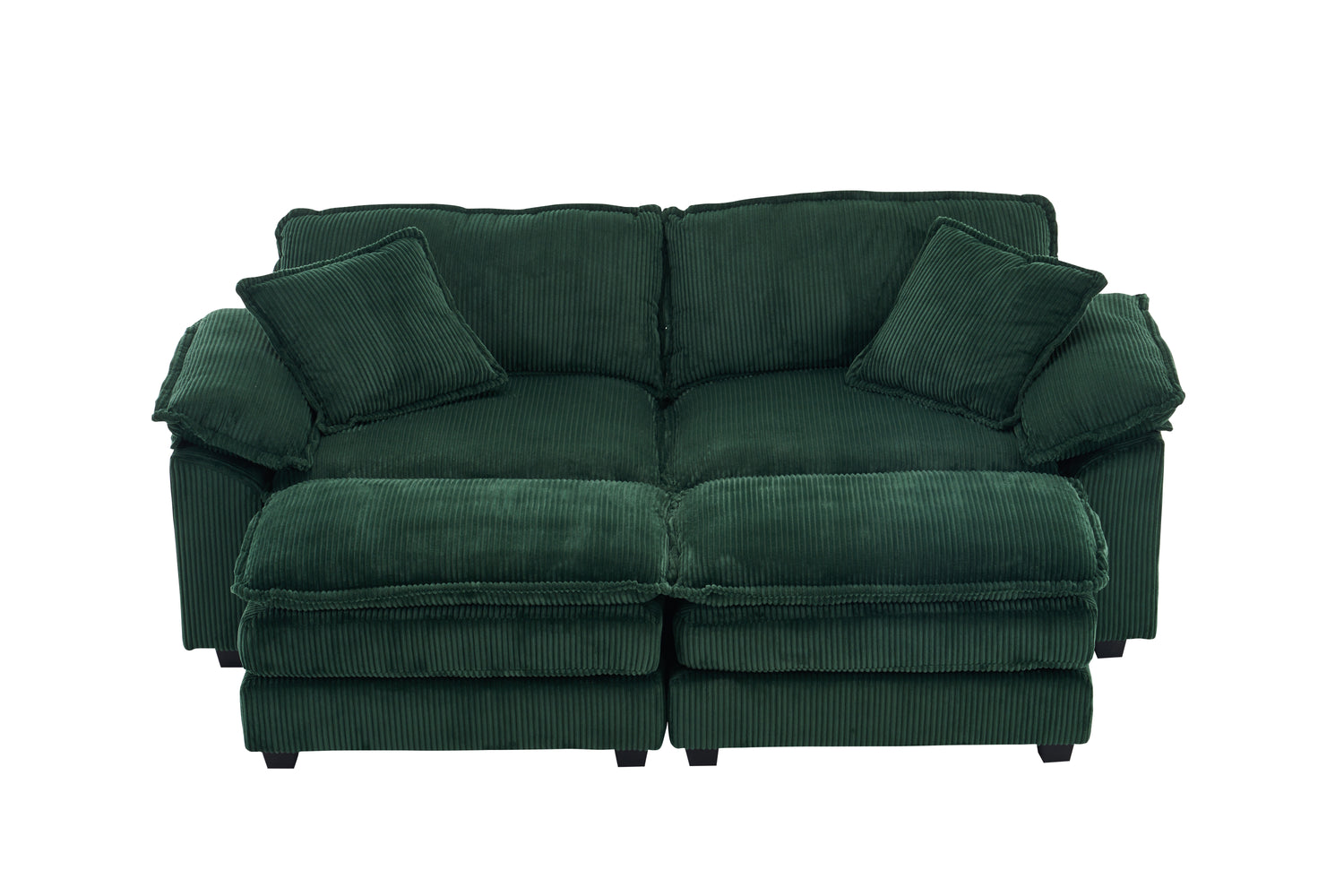 Corduroy 2-seats sofa With 2 back pillows,2 toss pillows and two ottoman, Green