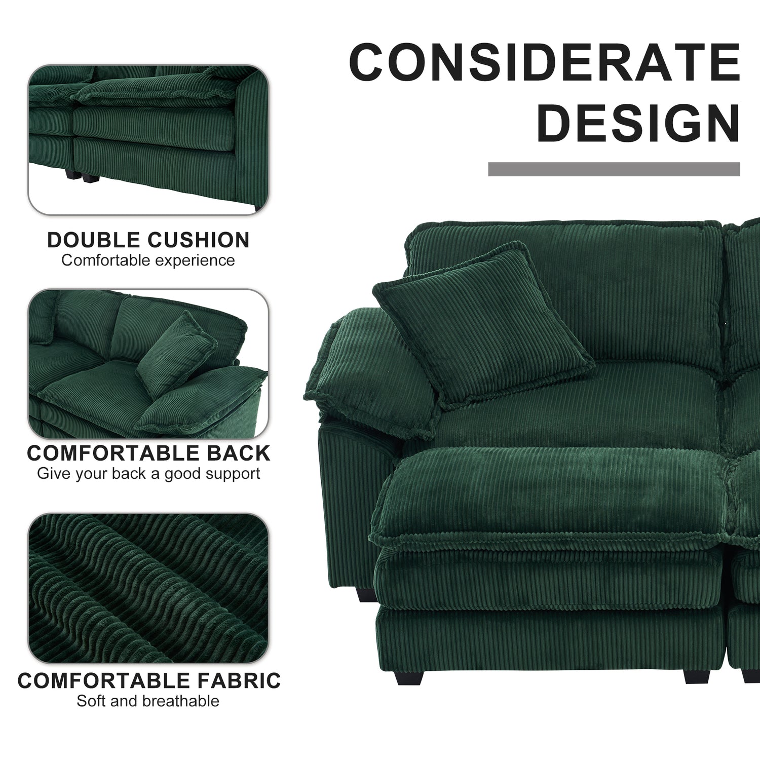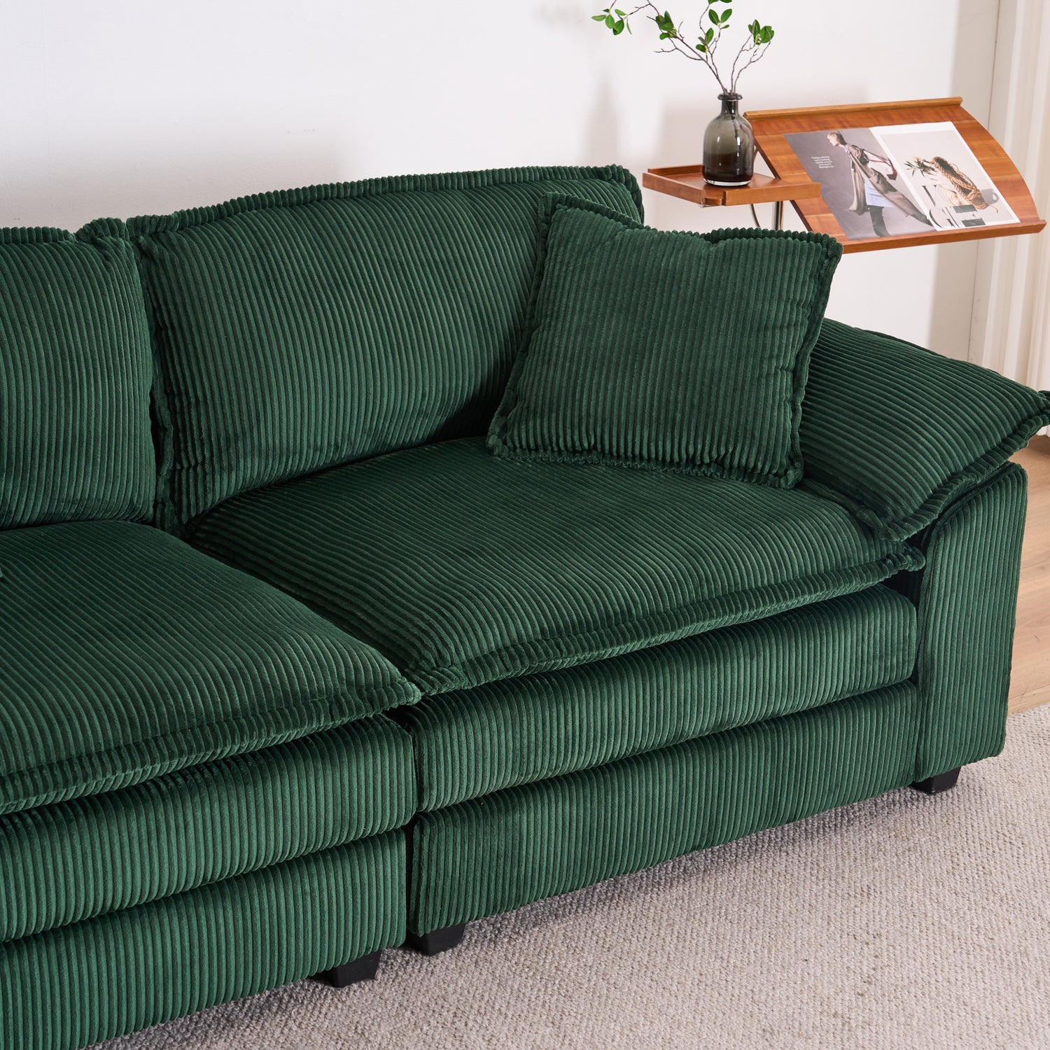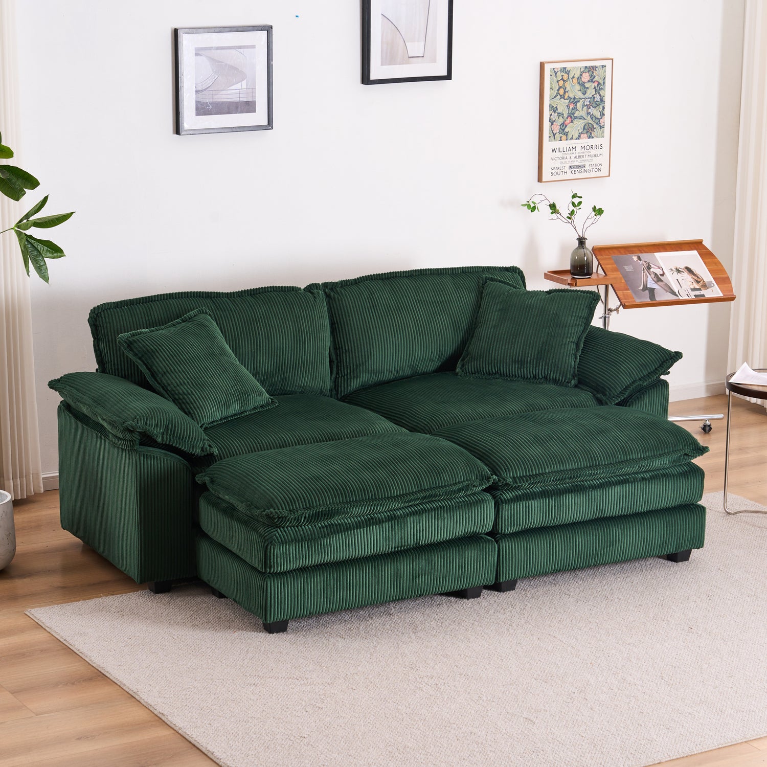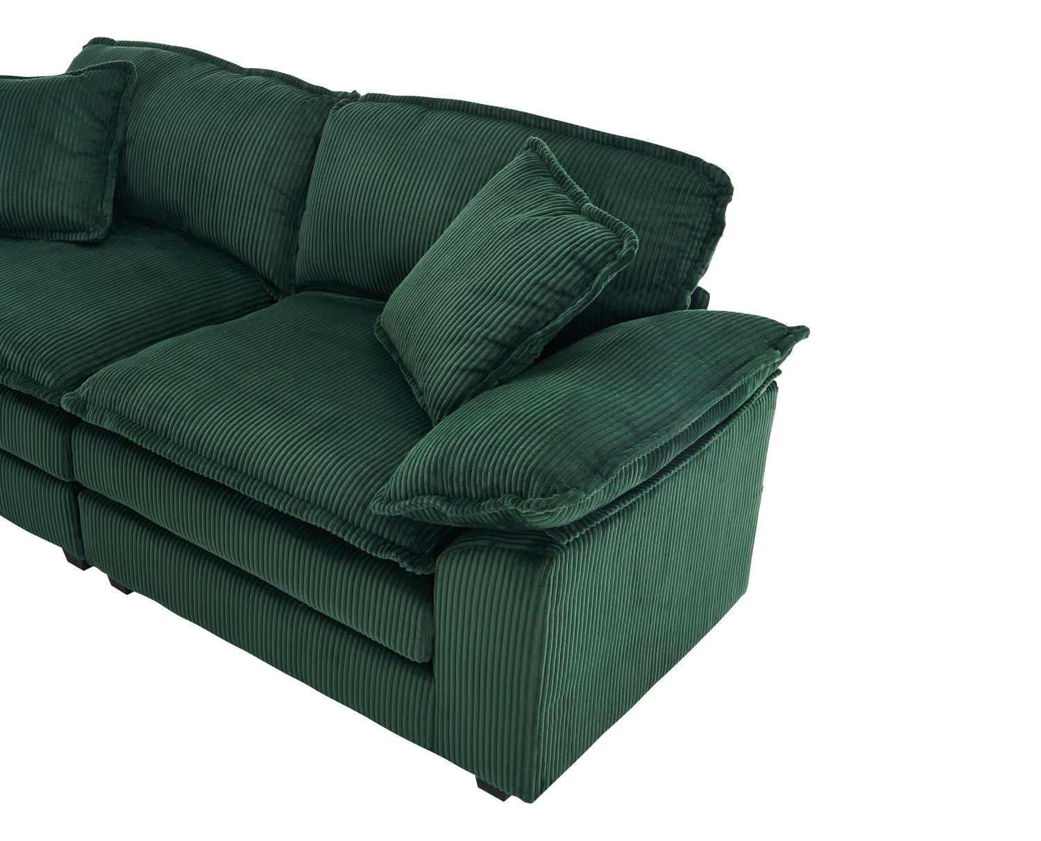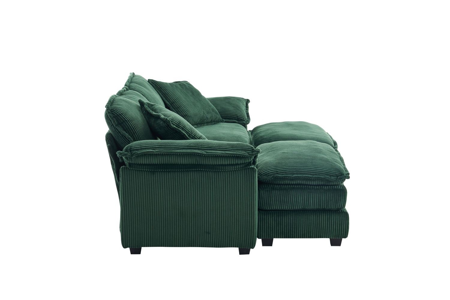 Corduroy 2-seats sofa With 2 back pillows,2 toss pillows and two ottoman, Green
