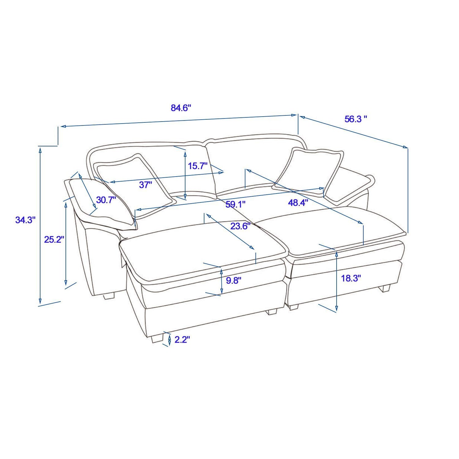 Products Size 84.6'W x 56.3 'Dx 34.3'H