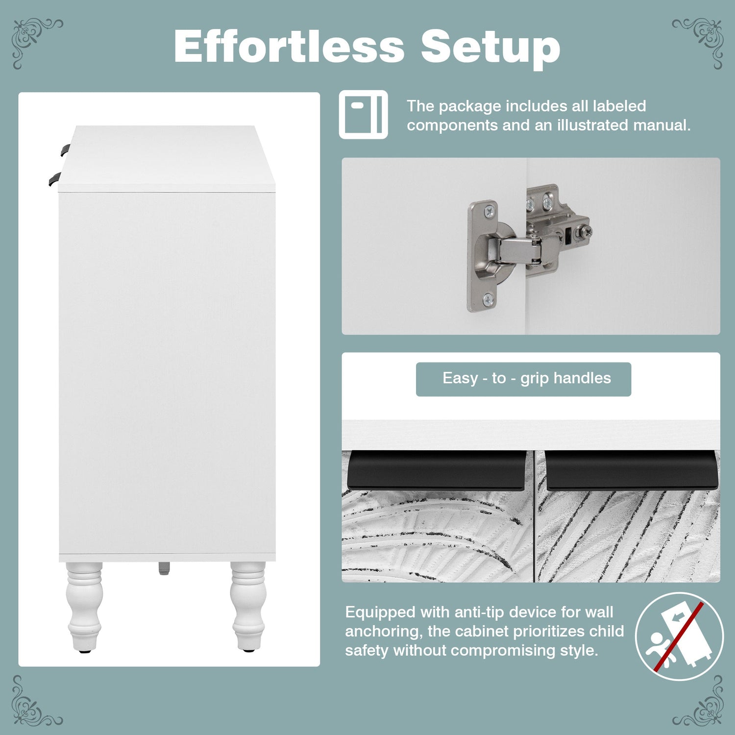 • The four Roman column legs, along with a center leg, offer significant stability and durability to the storage cabinet. Their thoughtful design, coupled with the central support, maximizes practicality, enabling safe and effective storage of various items. This design enhances daily home life convenience and comfort, making storage cabinets a vital addition to any living space.