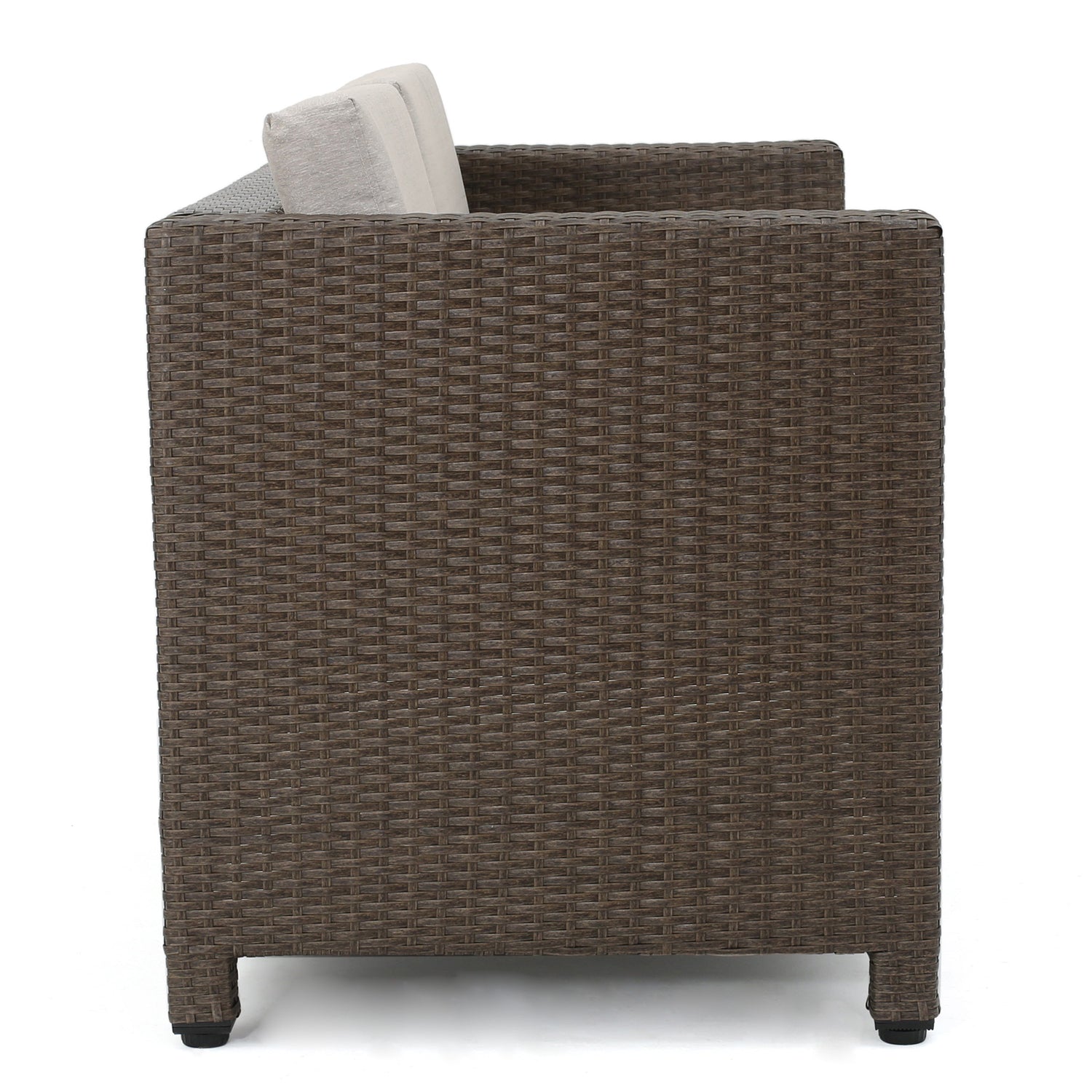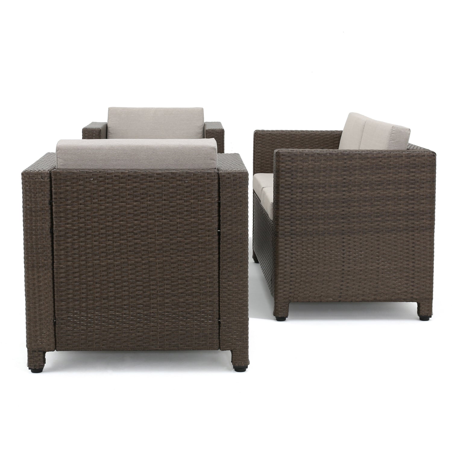- Our Puerta 4-Piece Outdoor Wicker Sofa Set offers your outdoor décor a relaxing atmosphere to unwind. This patio furniture is made of all-weather wicker over steel frames. Simple yet stylish, it boasts modern silhouettes and comfort for smaller spaces.