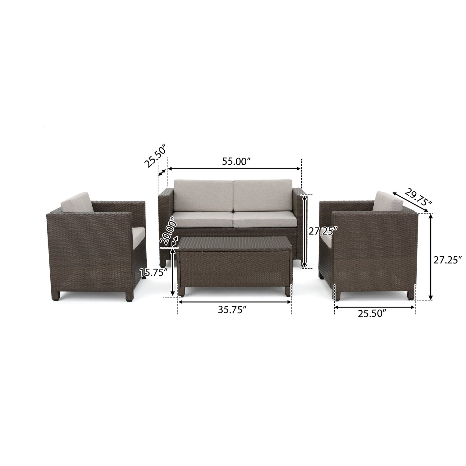- Entertain your guests outdoors while giving them plenty of room and even a place to set their drink or plate. With the included plush cushions, you can chat for hours in the comforts of the outdoors.