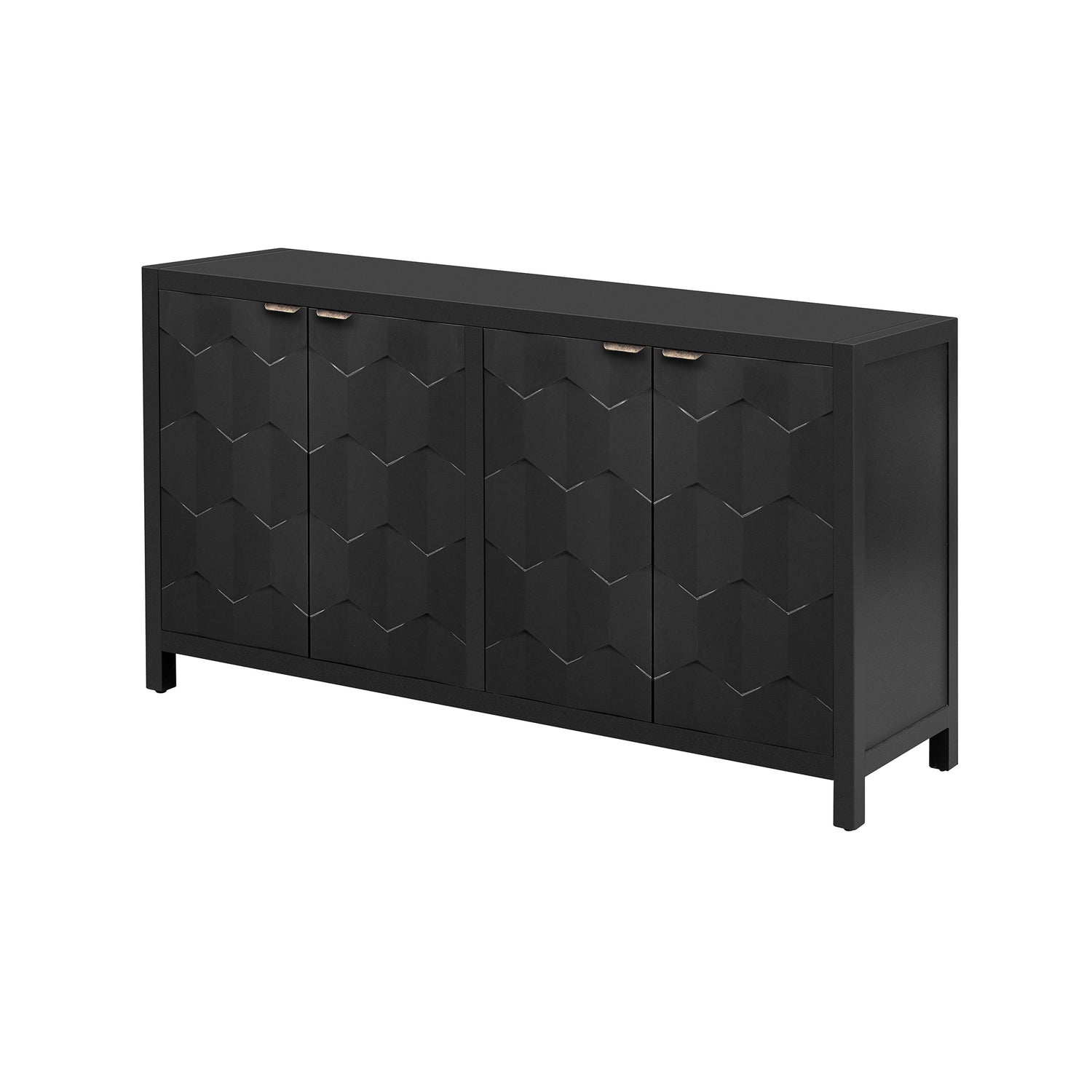 Luxurious Four-Door Sideboard with Honeycomb Patterned Doors