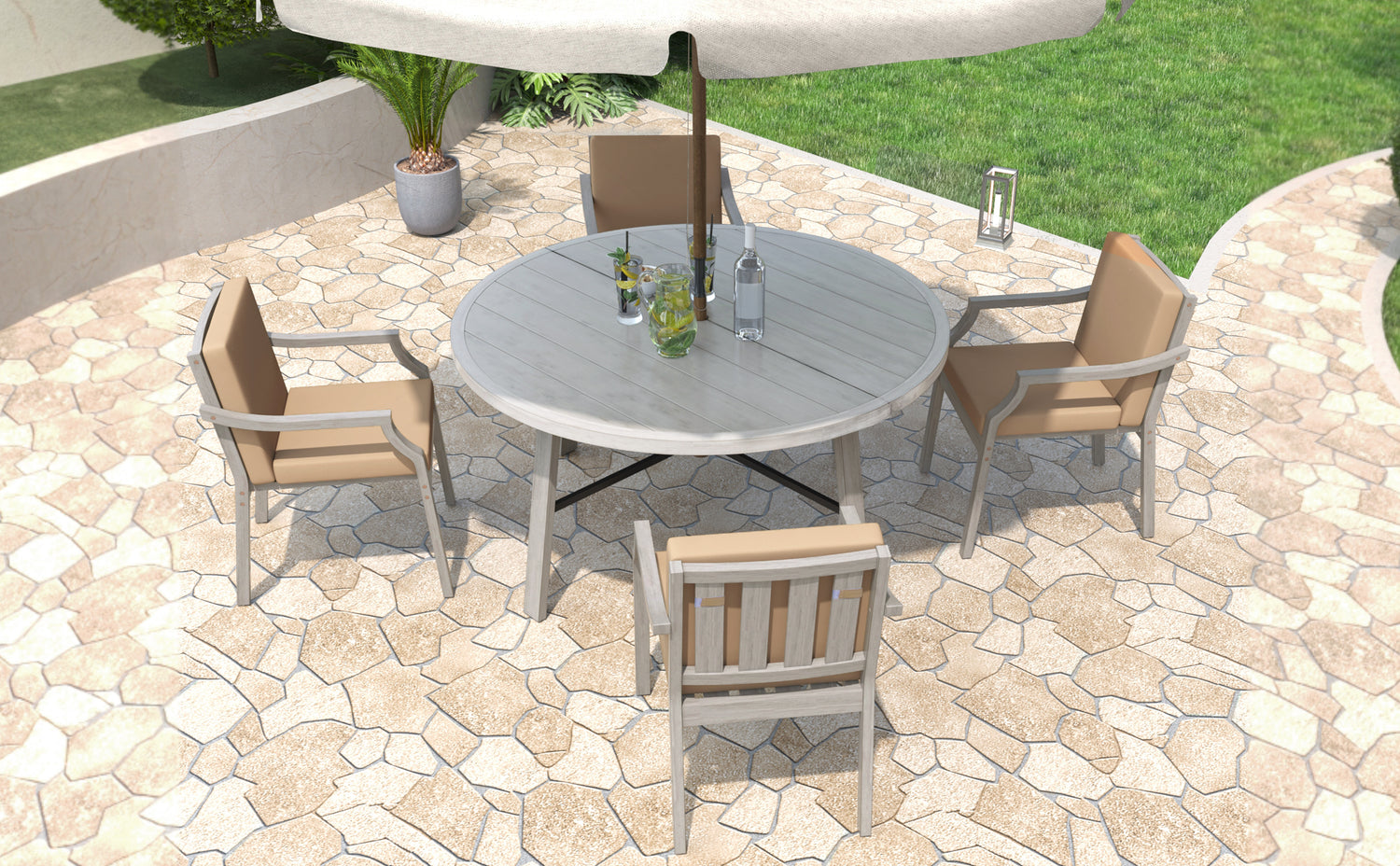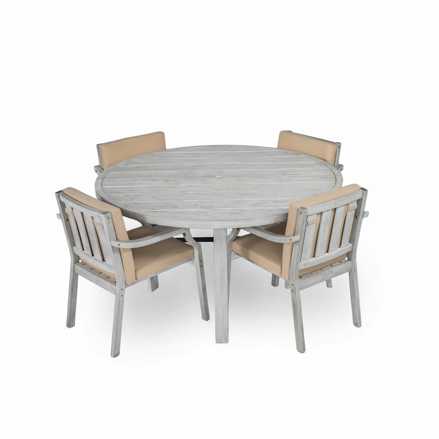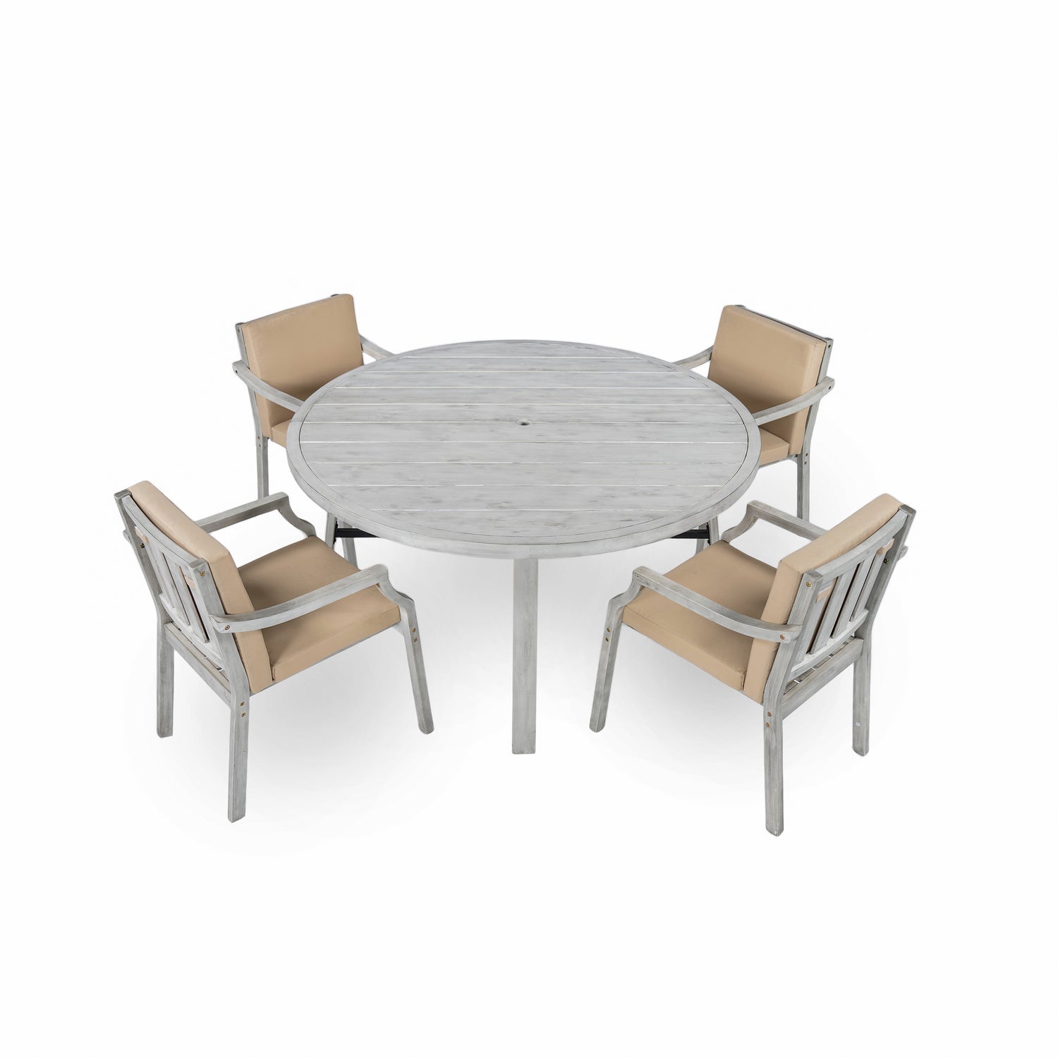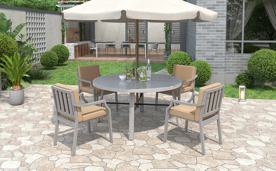 Antique Gray Outdoor 4-Person Wooden Dining Set with Umbrella Hole