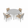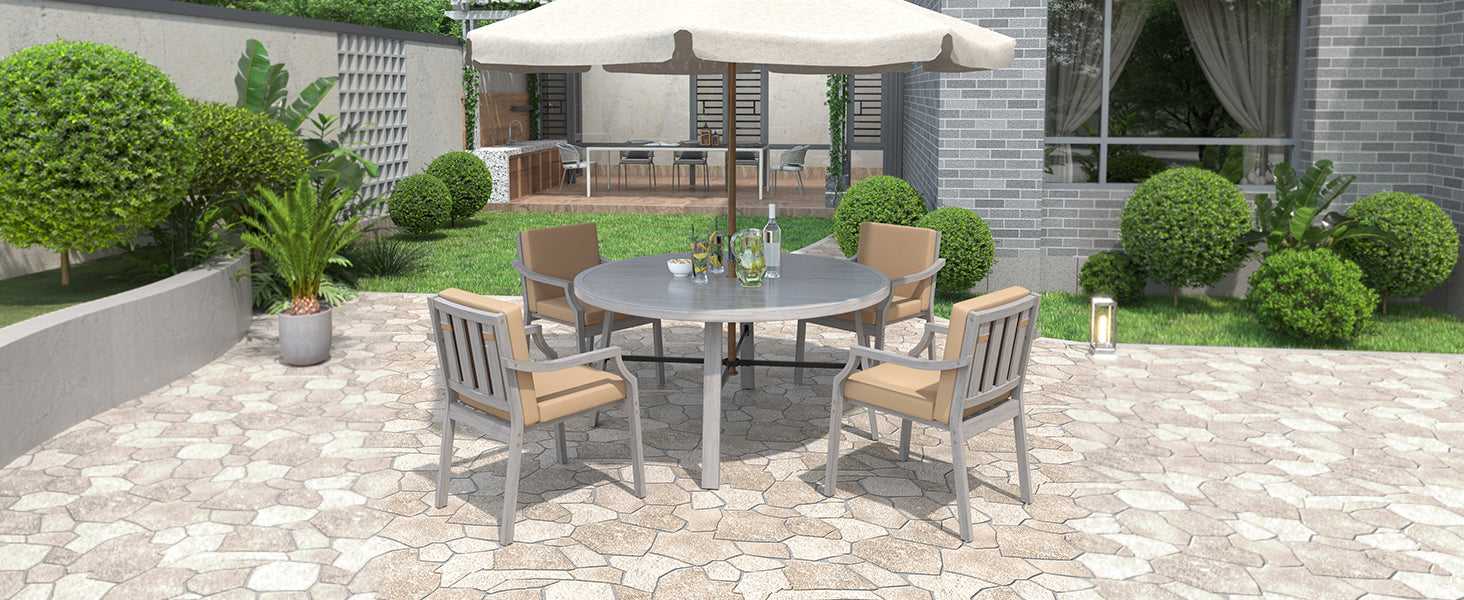 • Acacia Wood - This outdoor dining set is crafted from premium-grade Acacia wood, a highly sustainable and durable hardwood that is known for its resilience against weather changes and moisture.
