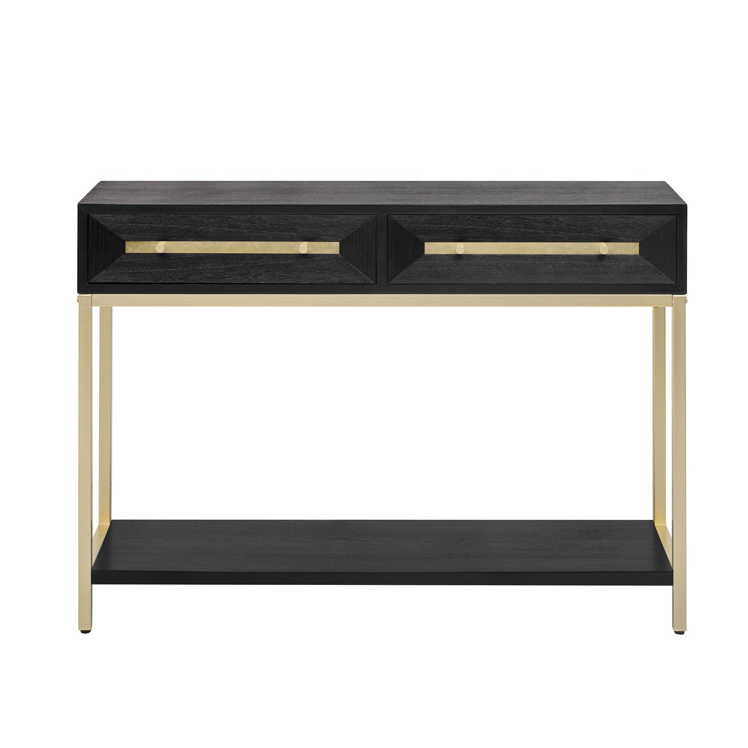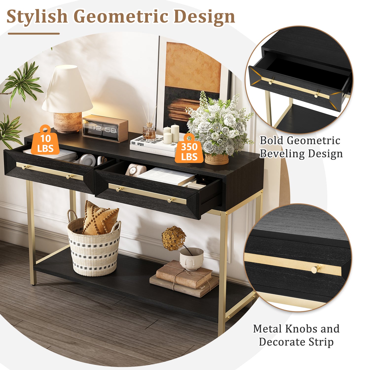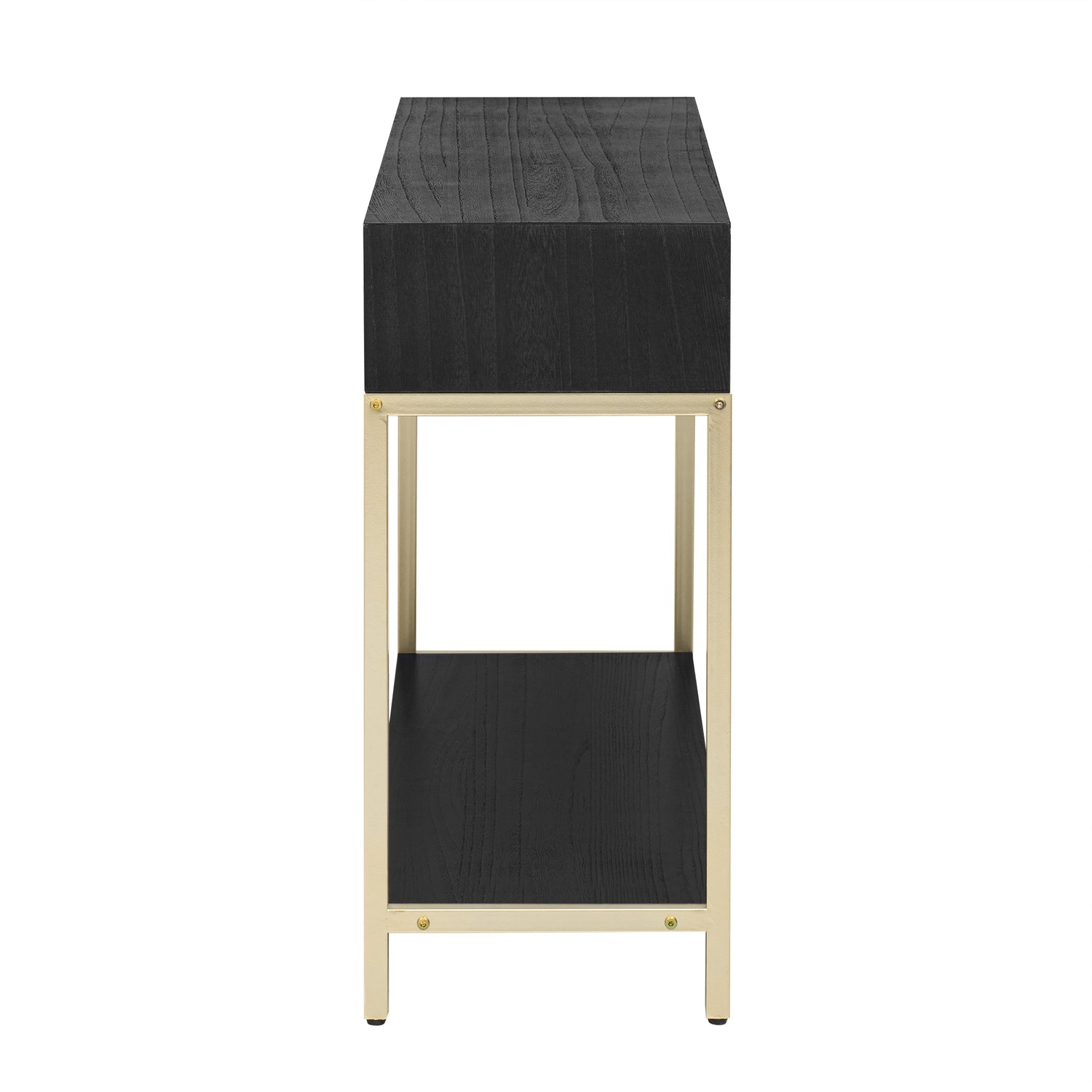 - Retro Style: Featuring a sleek black finish, clean lines, and refined gold-tone accents, this entryway table blends modern elegance with timeless appeal. Its minimalist design seamlessly complements vintage, transitional, or modern interior styles, making it an ideal choice for your hallway or living room as a sofa table or console table.