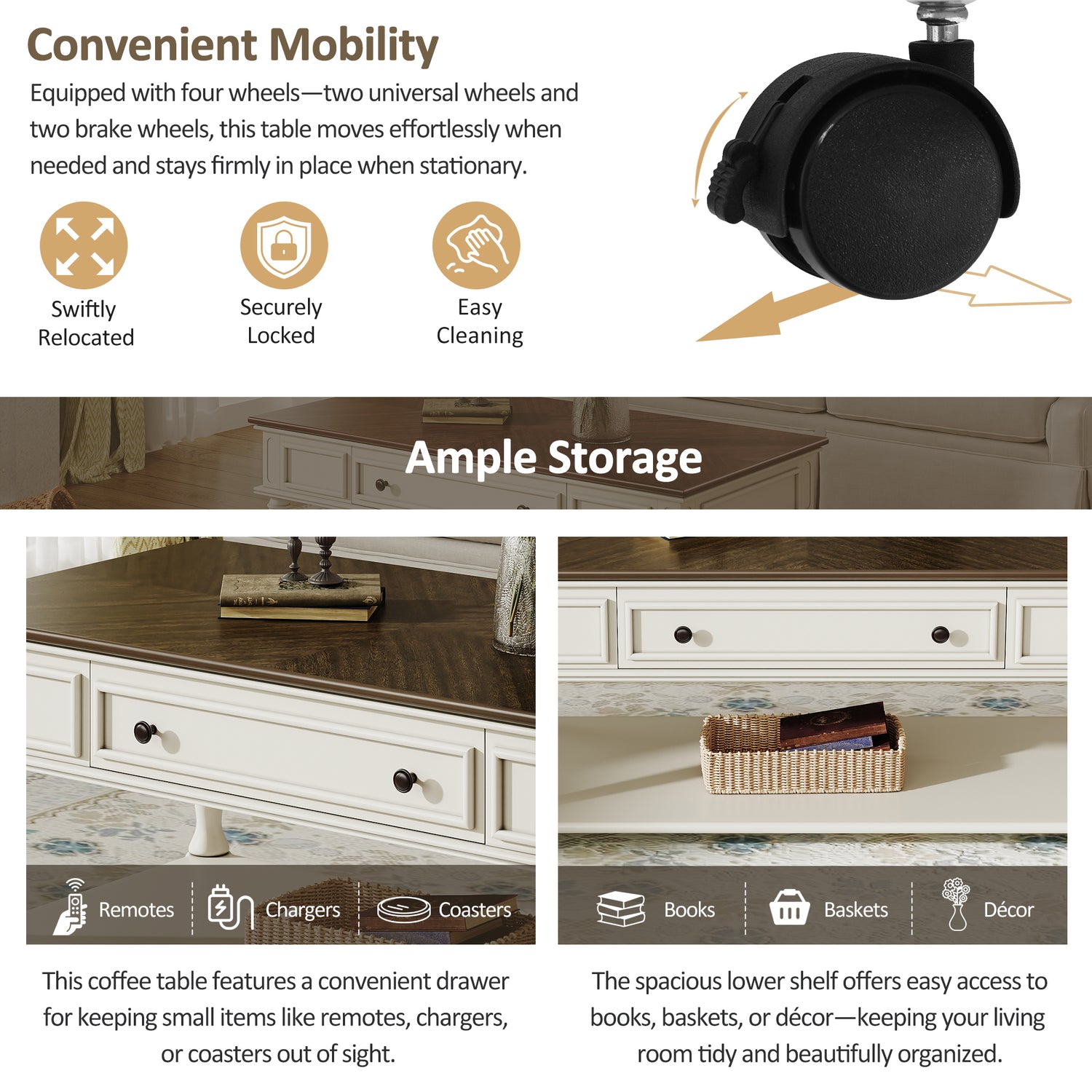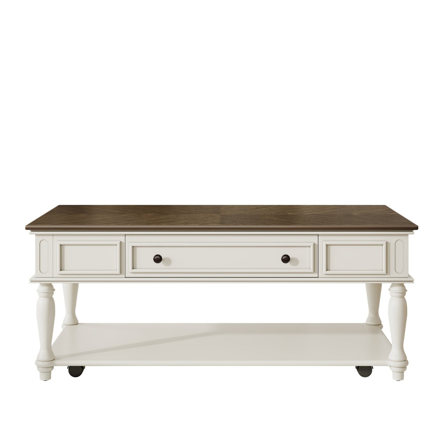 Farmhouse Coffee Table with One Drawer, Grey+White