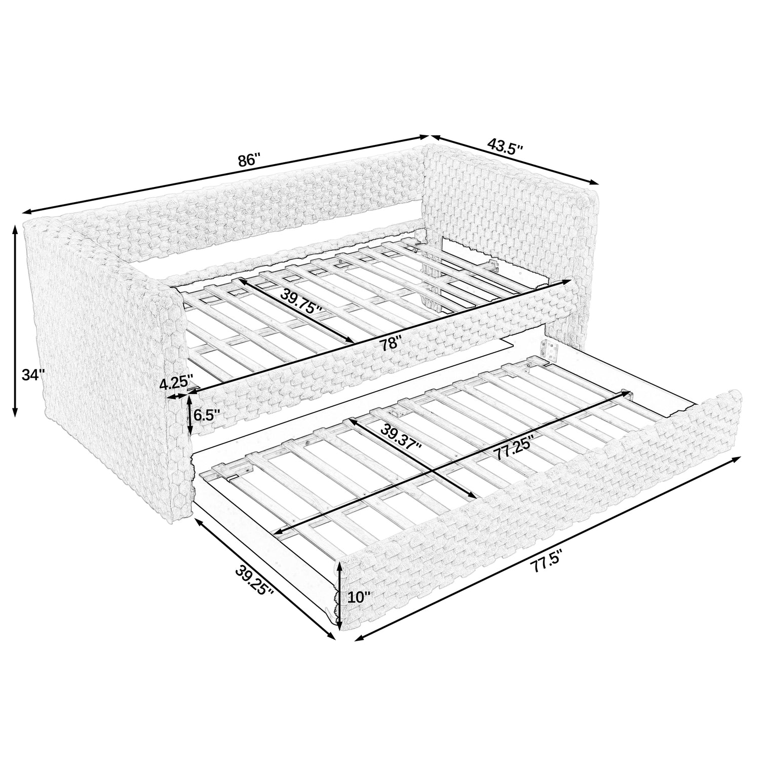 Modern Twin Size Daybed Upholstered Sofa Bed with Pull-Out Feature in Plaid Corduroy Fabric - Dark Grey