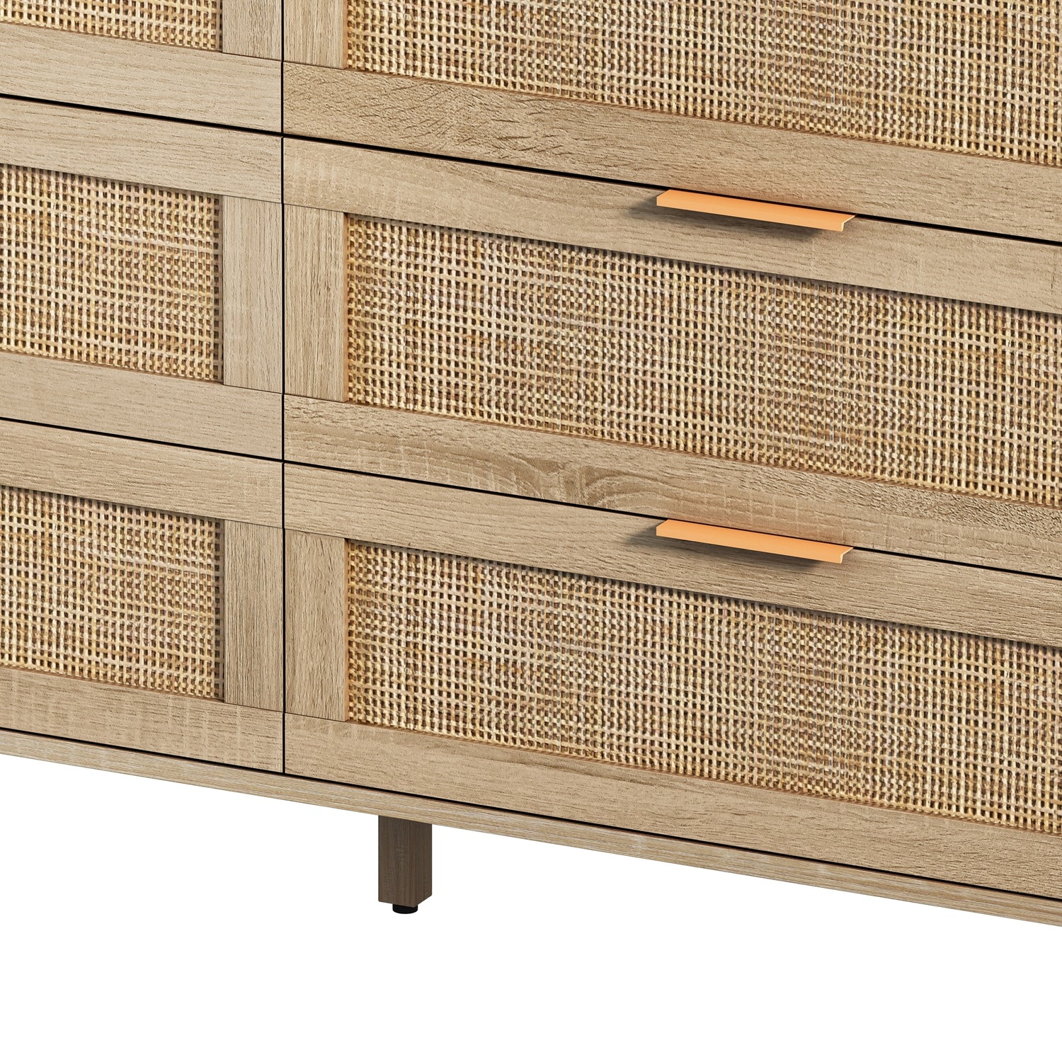 - High quality material:Our wooden dresser is made of high-quality chipboard, and the rattan box of the drawer is environment-friendly and smooth. The smooth guide rail can easily pull out and close the drawer.