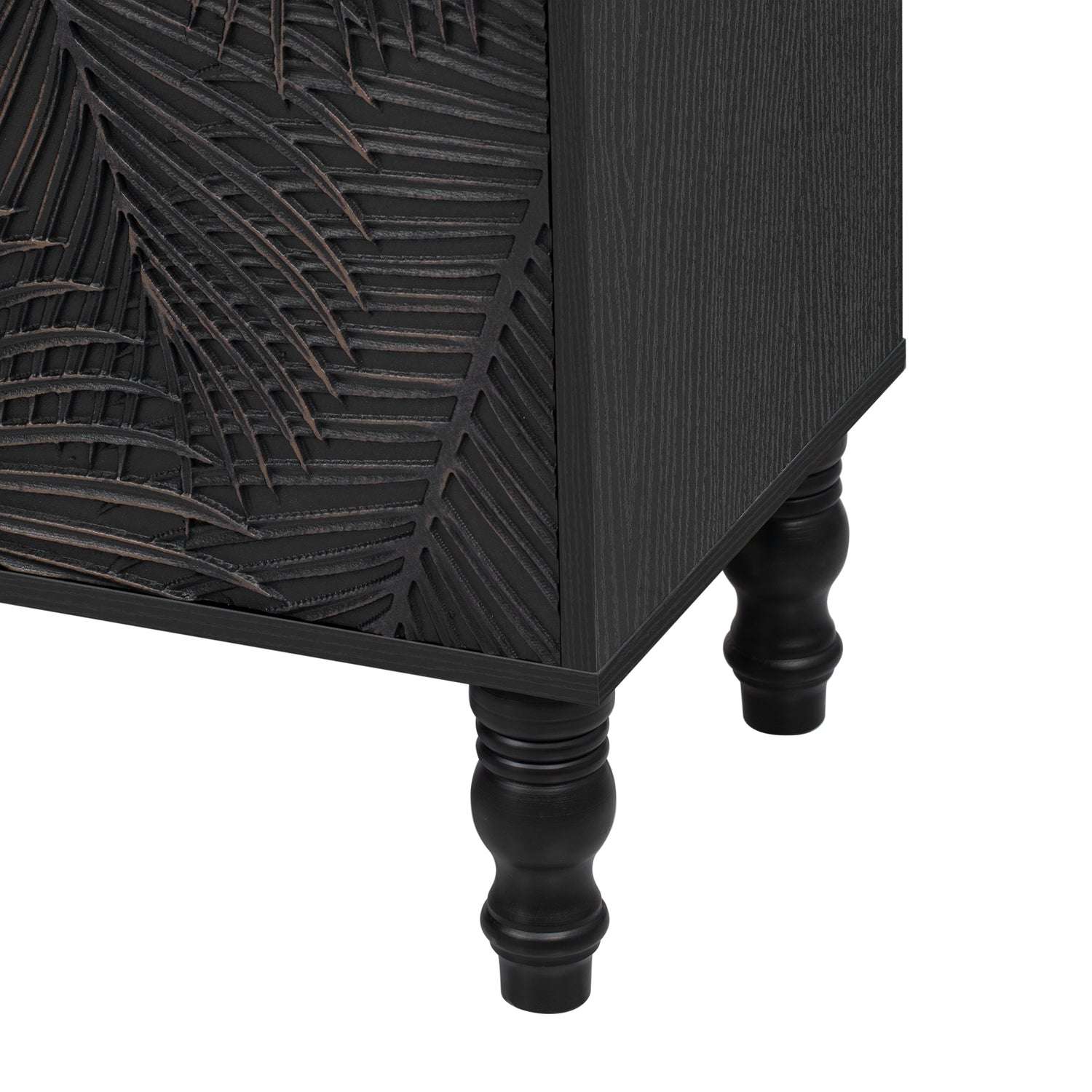 This sleek and modern TV stand, characterized by its stylish and flowing line design, seamlessly integrates modern aesthetics with natural allure. The intricate leaf patterns adorning its cabinet door breathe life into the indoor ambiance. Its refined handle design not only ensures a comfortable grip but also enhances the overall user experience. Positioned in either a spacious living room or a cozy bedroom, it swiftly captures attention, adding a vibrant touch. Featuring two spacious storage compartments and adjustable shelves, the TV cabinet offers versatile storage options tailored to meet a wide range of needs. From electronic gadgets to daily trinkets, it provides ample space for easy storage. Additionally, the inclusion of an anti-tipping device ensures heightened safety. Complete with all parts and comprehensive assembly instructions, the installation process is rendered straightforward and swift.