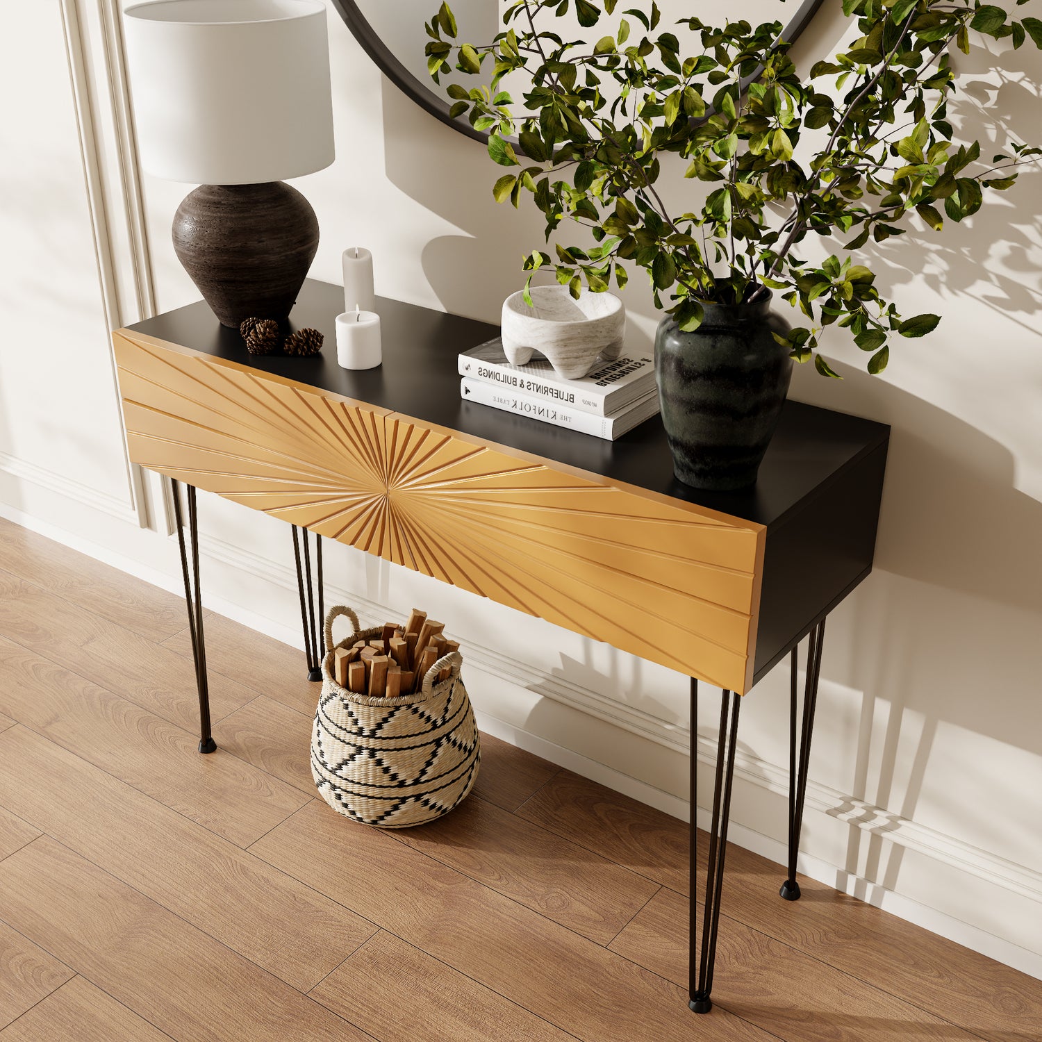 - Premium High-End Aesthetic: Featuring an elegant black and gold color scheme, the design exudes authority and luxury. The stunning radial sunlight pattern on the drawers adds a unique, warm artistic touch that elevates any room's ambiance.