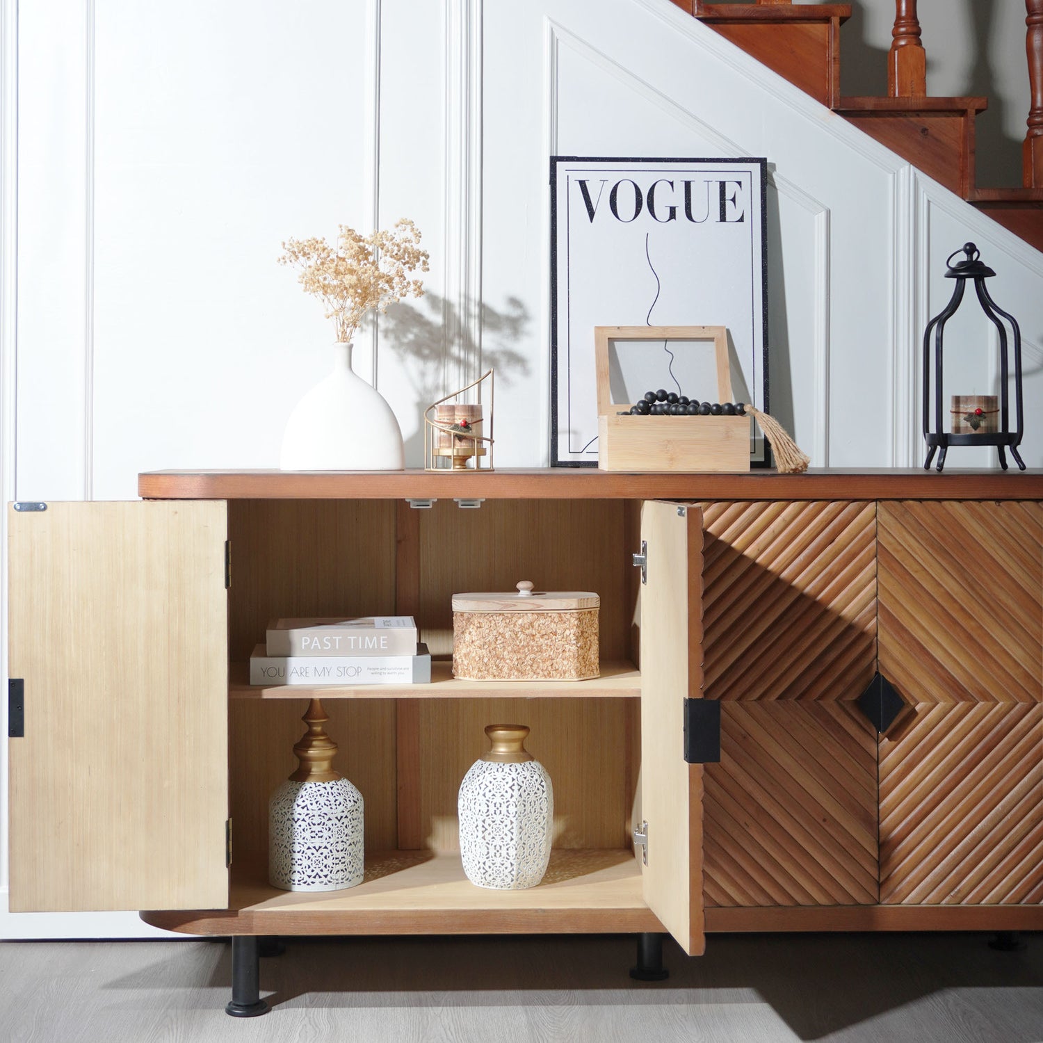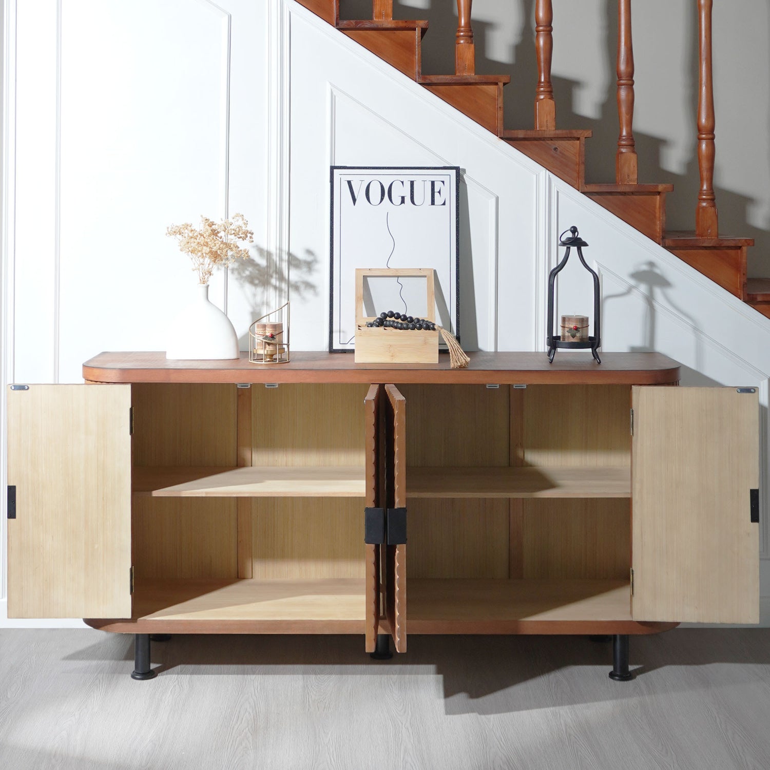 • Large Storage Space - With an adjustable shelf and wide desktop, this storage cabinet provides ample storage space for all your belongings. This buffet cabinet have 4 doors and 4 big storage space. with 2-layer structure inside the cabinet, which provides ample storage space for spice jars, red wine, snacks, cans, cutlery, tea cups and other items to keep your home space . Tips : the interior shelf is adjustable with 2 height options to fit your storage needs.