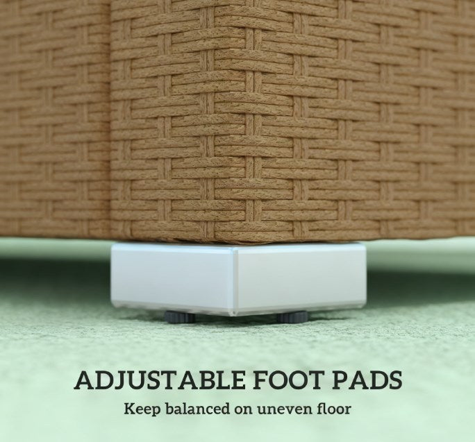 • Hand-woven all-weather plastic wicker covered with 180g polyester fabric resisting water wear and fading