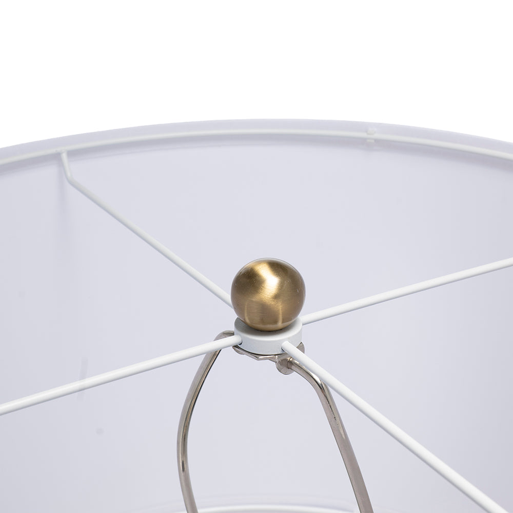 - The fabric drum shade allows the lamp to emit a soft, warming glow that spreads a relaxing ambiance throughout your home.