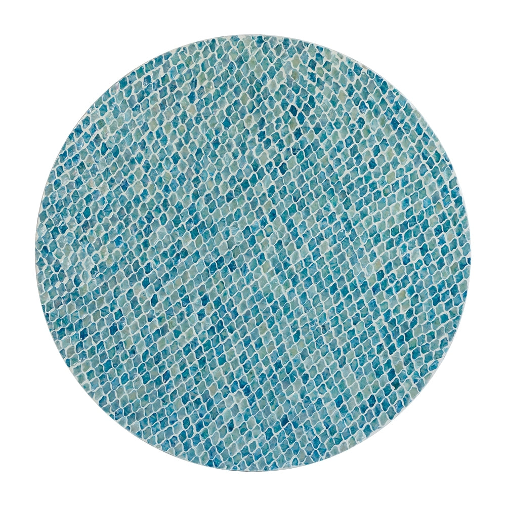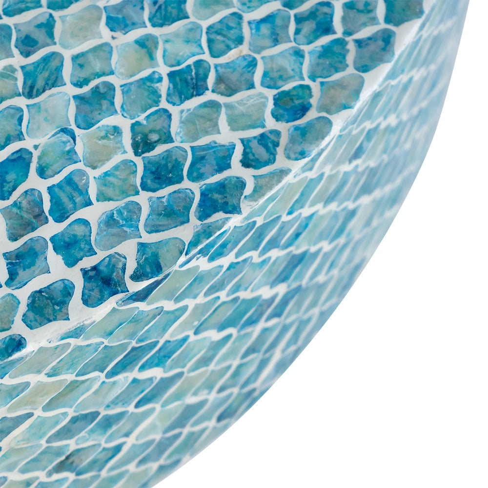 - Crafted in blue it features a gorgeous capiz design formed from meticulously inlaid pieces and complemented with a pedestal base.