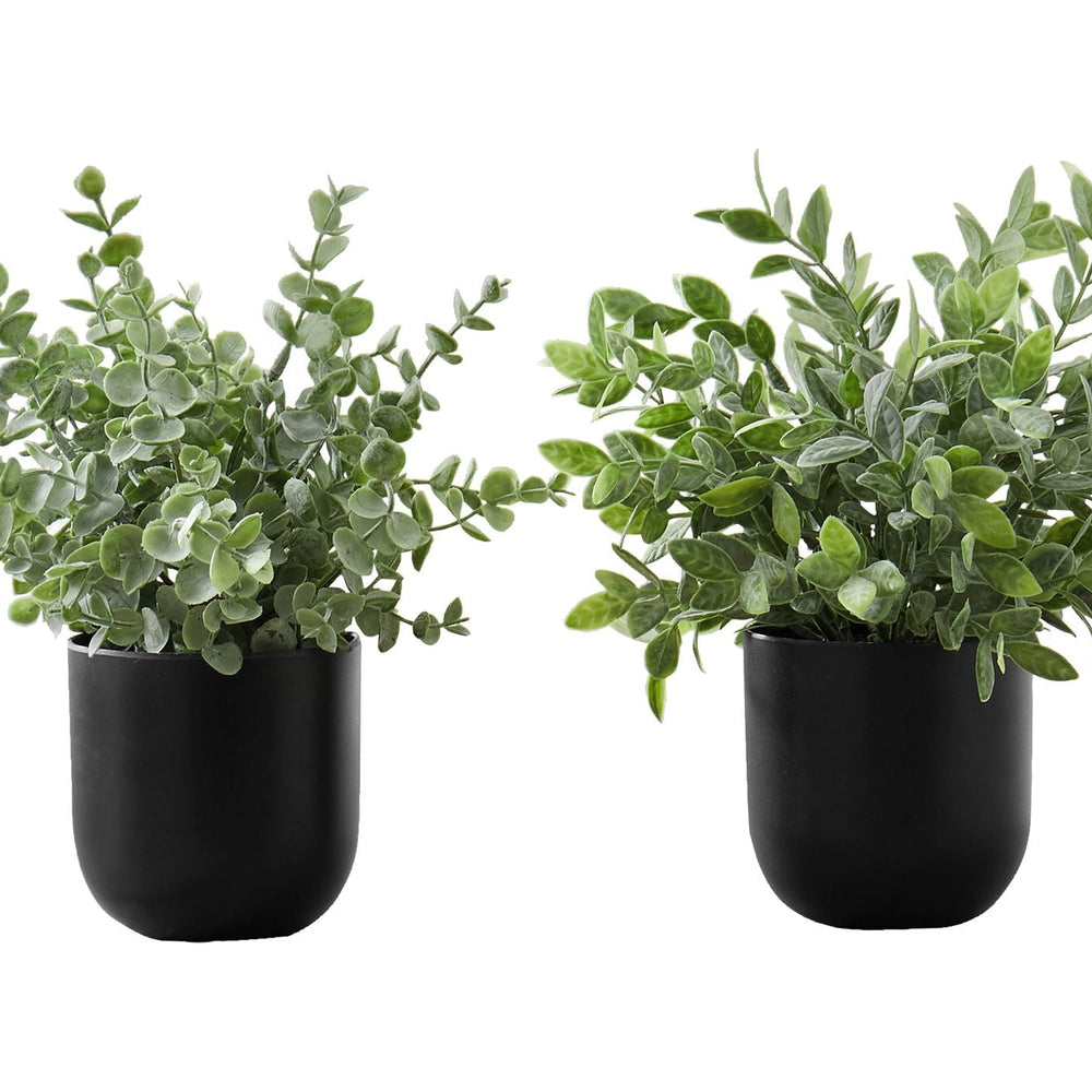 11" Tall, Artificial Plant, Eucalyptus Grass, Indoor, Faux, Fake, Table, Greenery, Potted, Decorative (Set of 2) - Green / Black